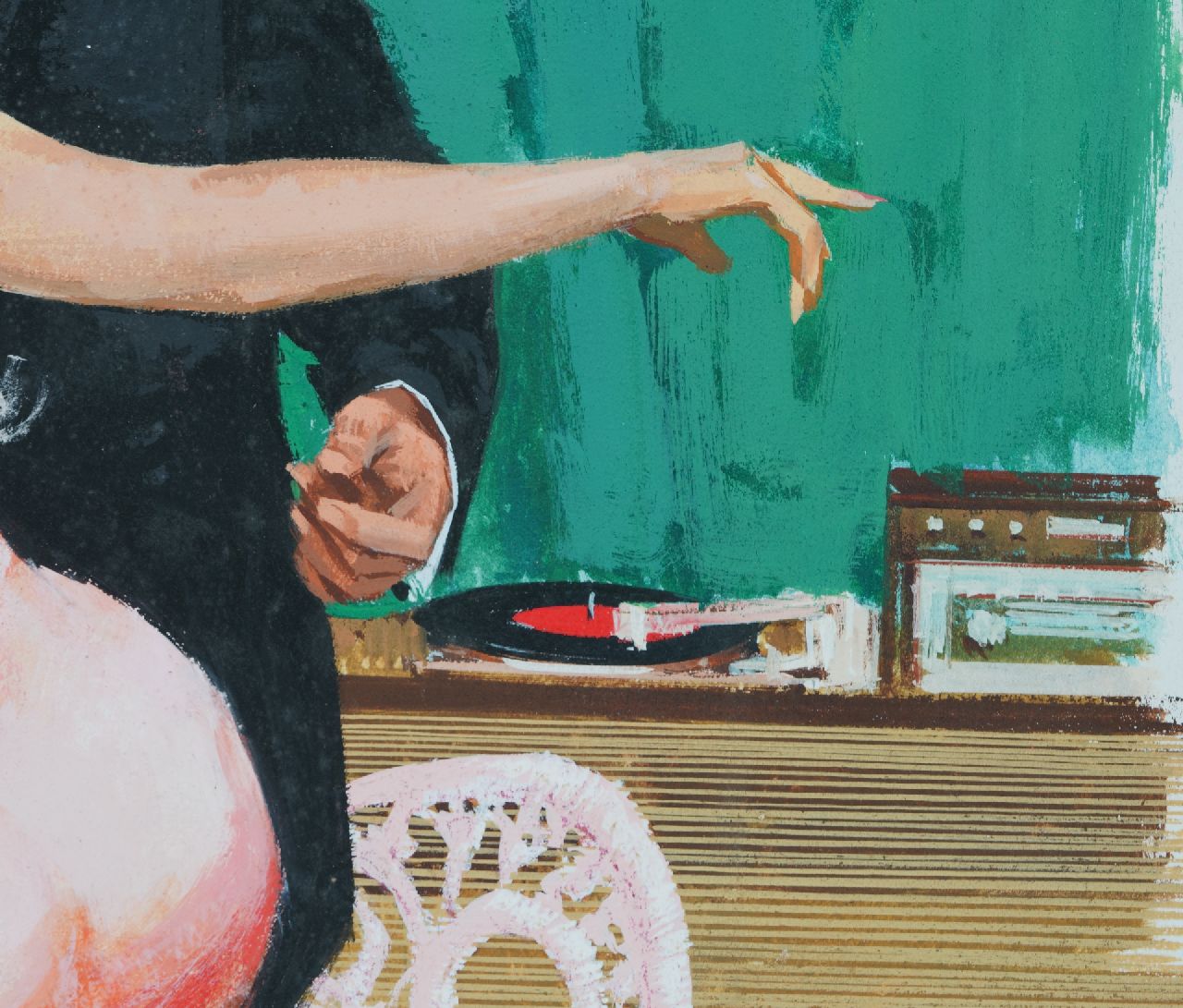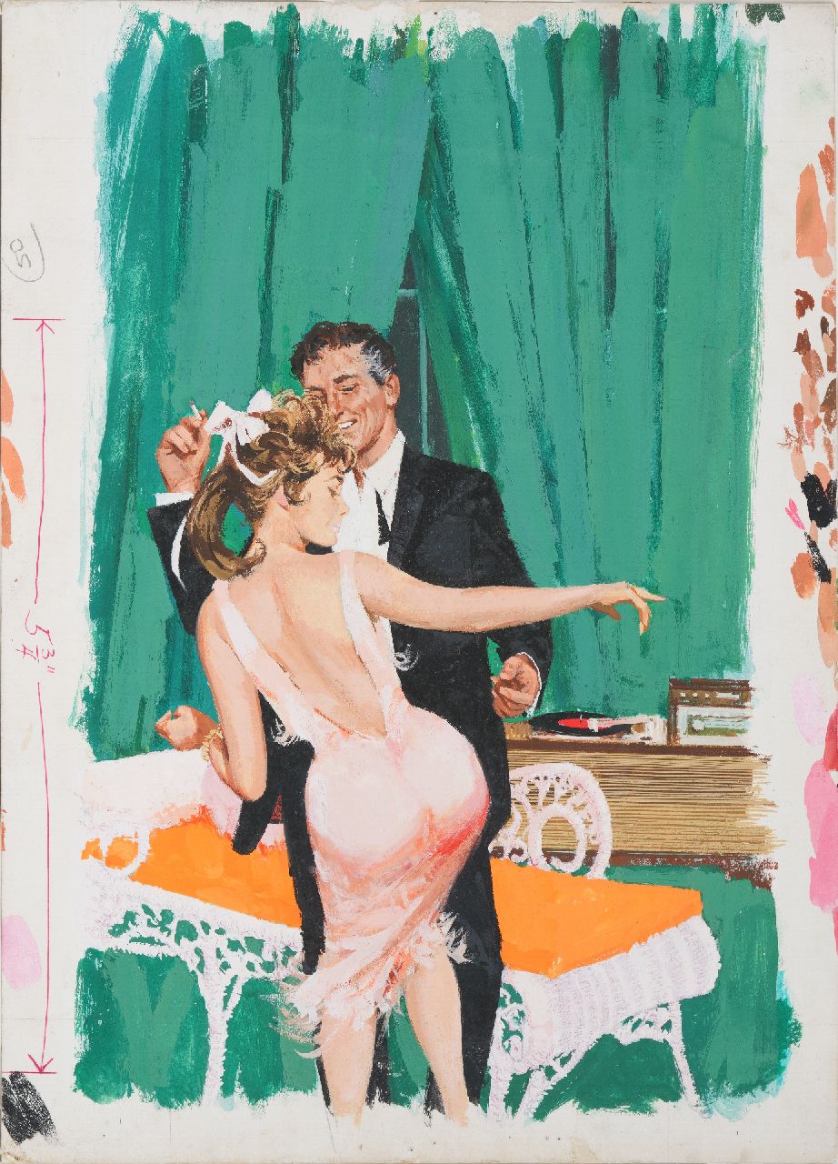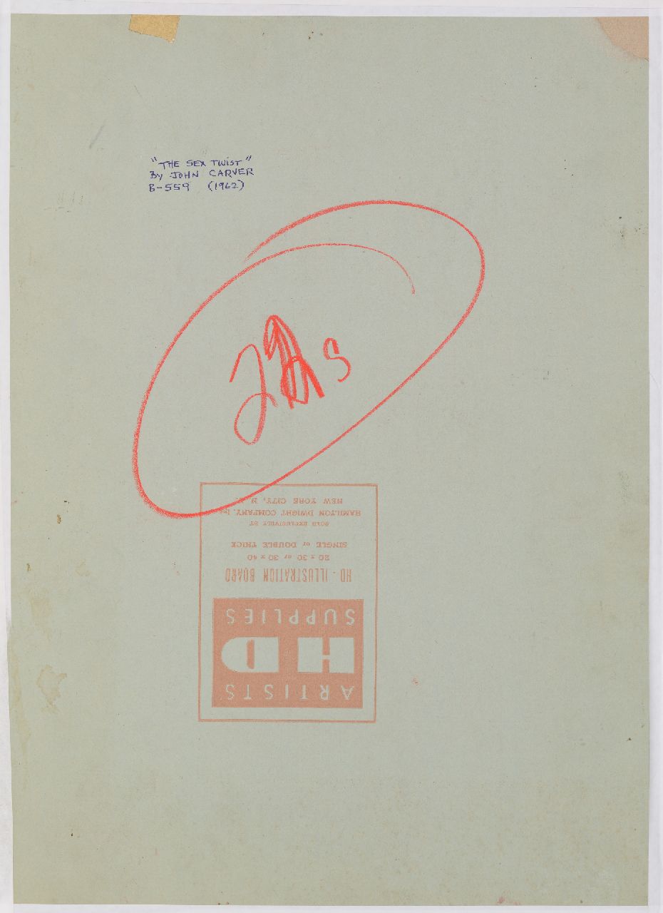 Deze gouache behoorde tot de collectie van de Amerikaanse kunstverzamelaar Charles Martignette (1950-2005); de voorstelling werd in 1962 gebruikt als paperbackomslag van 'The Sex Twist' door John Carver, Beacon Books nr. 559F. Martignette verzamelde vanaf 1970 schilderijen en gouaches die als voorbeeld dienden voor illustraties en omslagen van Amerikaanse tijdschriften, kalenders en paperbacks. Het merendeel van zijn collectie besloeg de ‘golden age’ van de Amerikaanse illustratiekunst en ‘pinup art’: van ca. 1910 tot in de jaren ’60. Samen met Louis K. Meisel schreef hij de naslagwerken 'The Great American Pin-Up' en 'Gil Elvgren: All His Glamorous American Pin-Ups'.