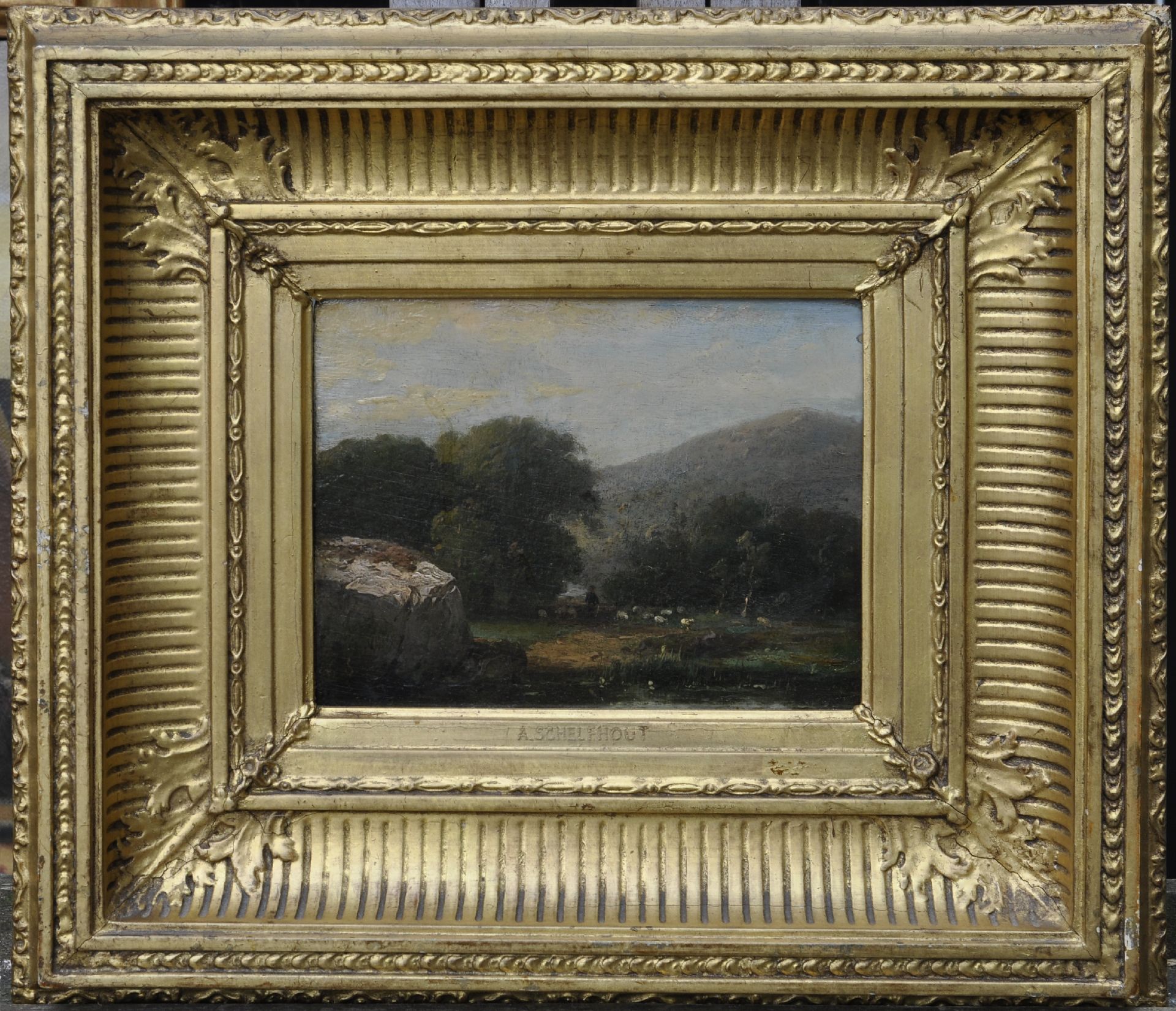 olieverf op paneel 13,8 x 17,5 cm, gesigneerd linksonder met initialen A Sc