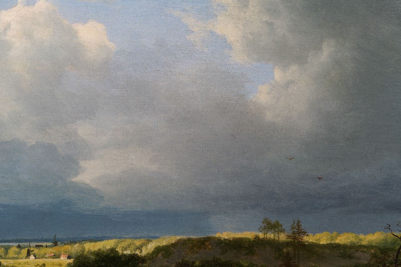 Koekkoeks 17e-eeuwse voorganger Jacob van Ruisdael schilderde wel 30 gezichten op Haarlem vanuit de duinen. Bij Koekkoek zien we dezelfde lage horizon zodat alle aandacht uitgaat naar de indrukwekkende wolkenlucht. Het schilderij was in 1916 te koop bij Kunsthandel C.M. van Gogh, de ‘winkel van oom Cor’ zoals Vincent het in zijn brieven noemde.