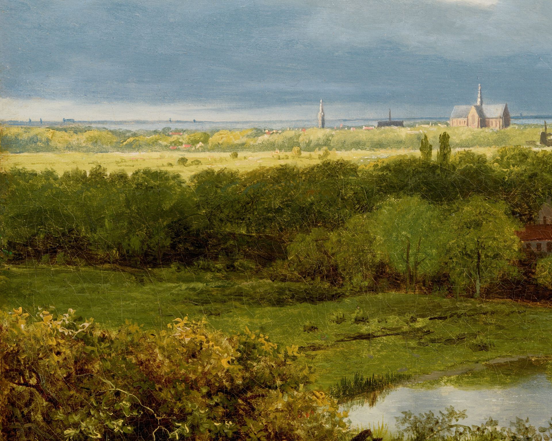 Barend Cornelis Koekkoek kunstwerk • schilderij • te koop Panoramisch landschap met Haarlem in de verte