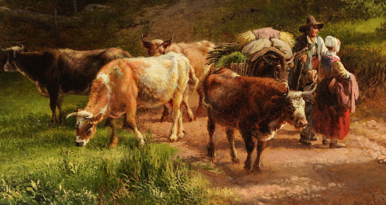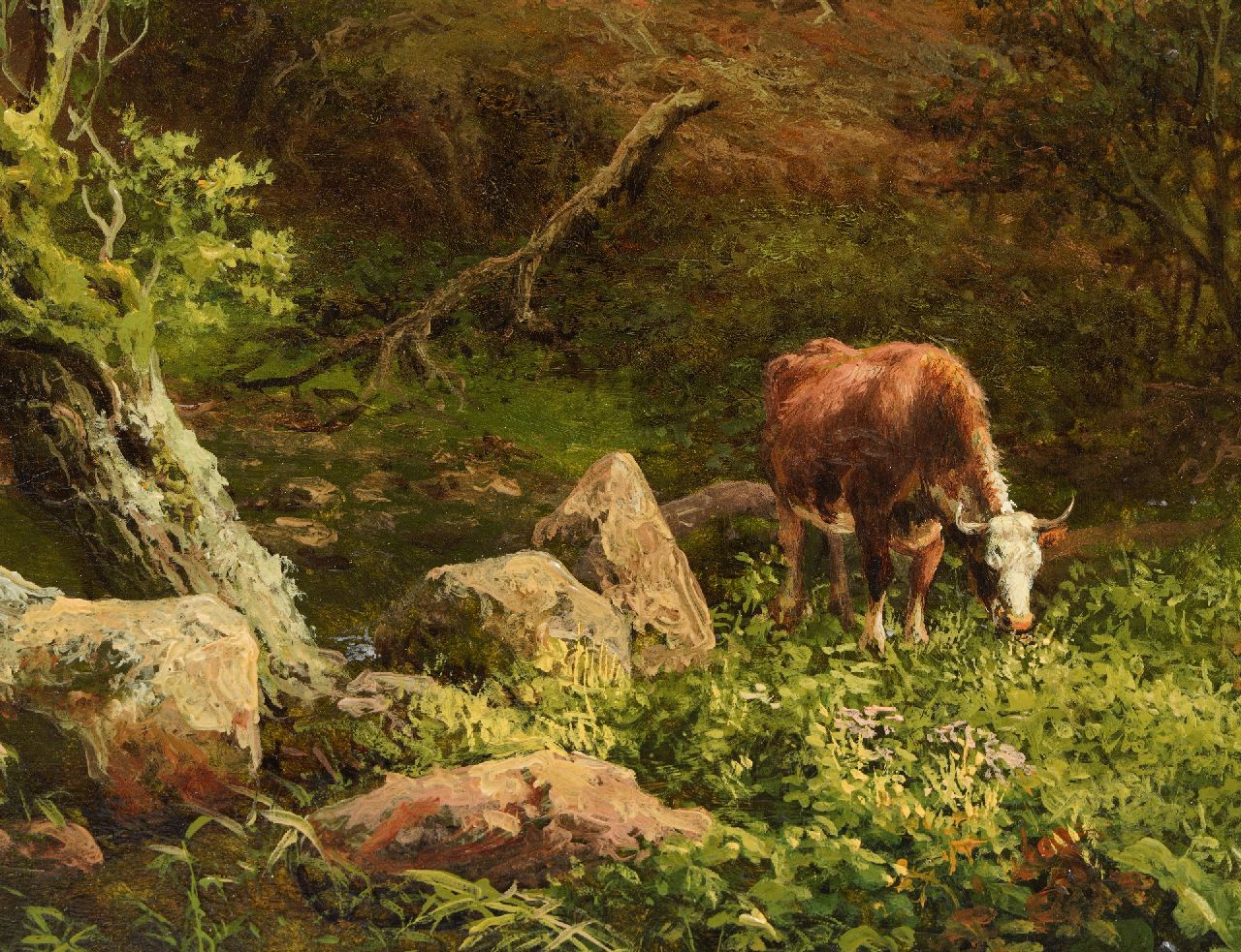 Barend Cornelis Koekkoek kunstwerk • schilderij • voorheen te koop Zomers bosgezicht met vee en figuren