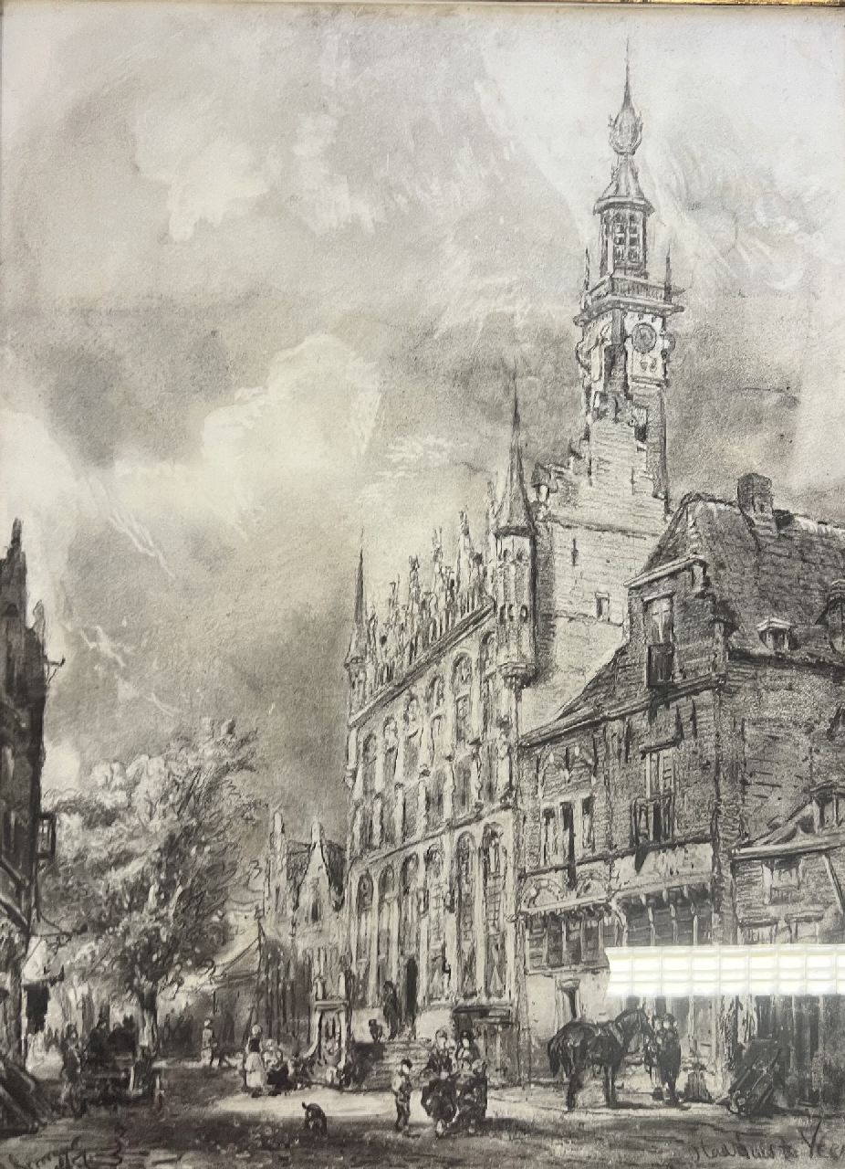 Cornelis Springer kunstwerk • aquarel • tekening • te koop Stadhuis te Veere