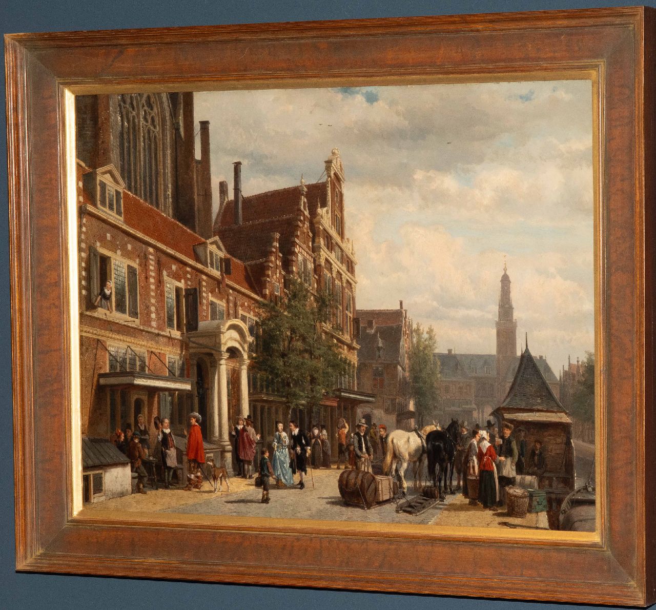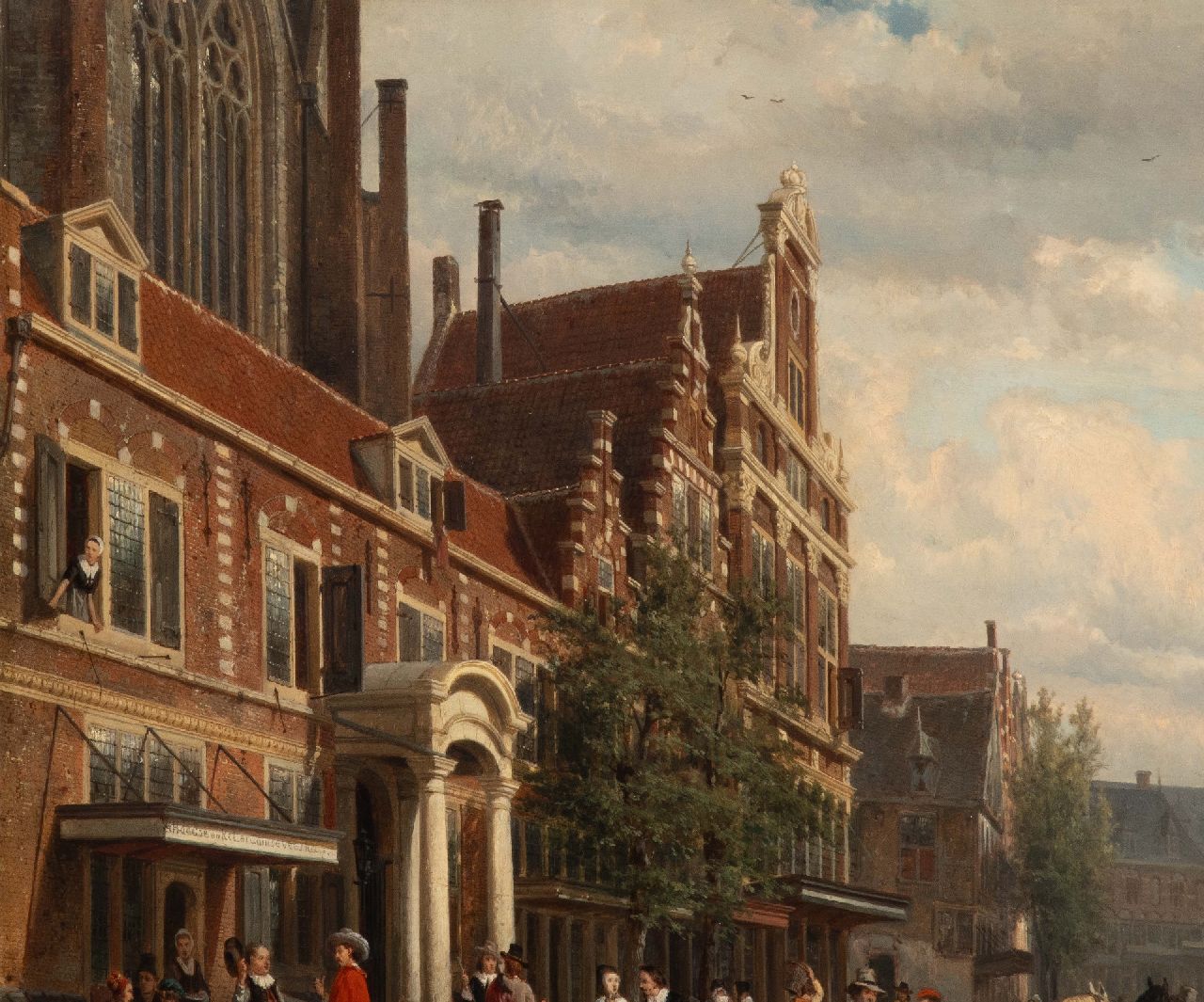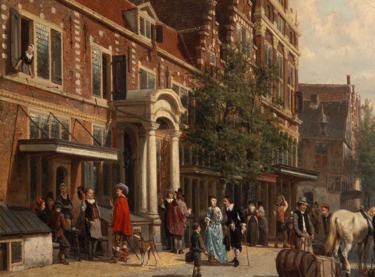 Cornelis Springer schilderde vooral stads- en dorpsgezichten waarin gevels en levendige stoffage baden in een warm zonlicht. Samen met Barend Cornelis Koekkoek en Andreas Schelfhout behoort hij tot de belangrijkste schilders van de Hollandse romantiek. In zijn schilderijen is vaak een prominente plaats toebedeeld aan gebouwen uit de 17e en 18e eeuw. Soms is dit een fantasie-architectuur, maar in de meeste gevallen waren dit bestaande gebouwen waarvan men rond 1850 de schoonheid 'herontdekte'. Springer maakte van deze gebouwen meestal eerst een uitvoerige schets, die hij dan later tot schilderij uitwerkte.