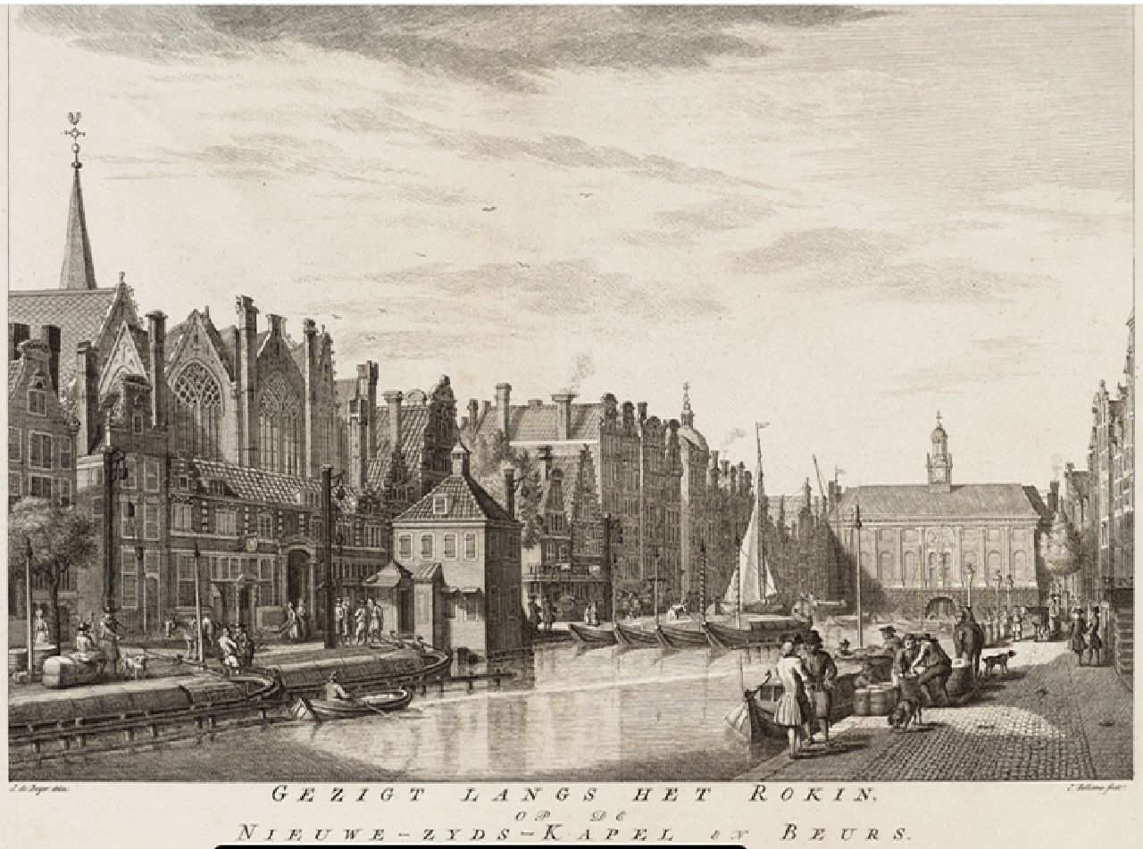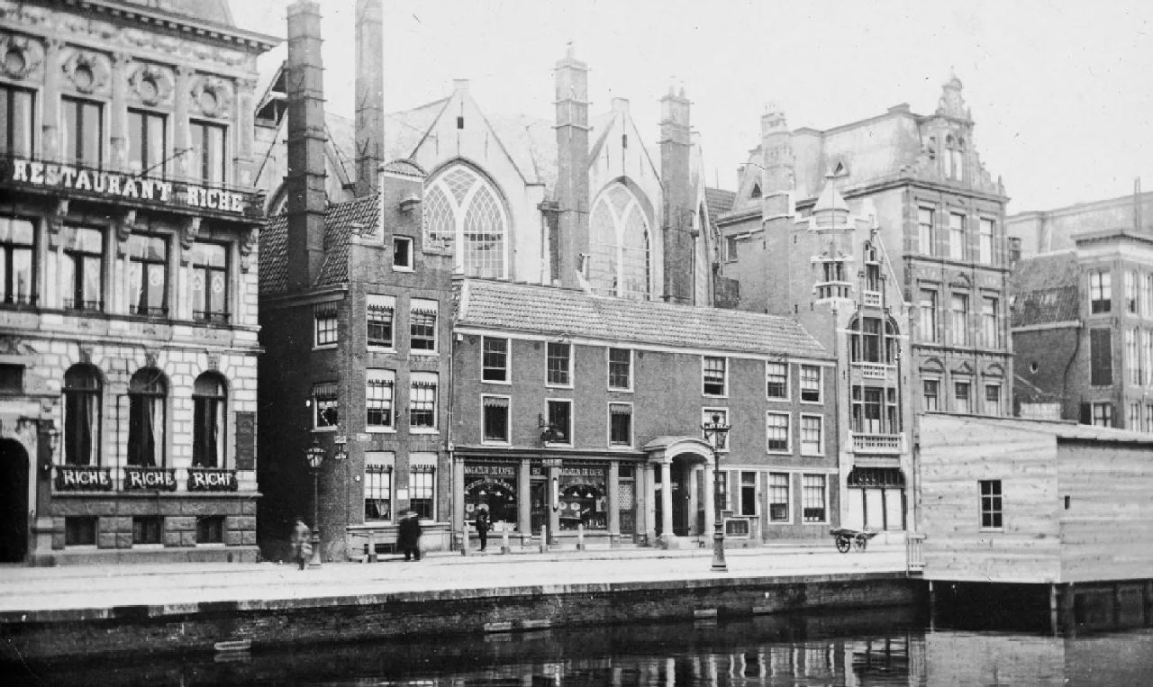 Gezicht op de Nieuwezijds Kapel gezien vanaf het Rokin, Amsterdam