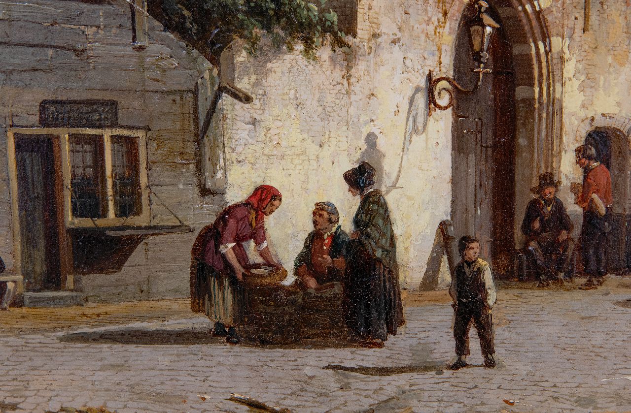 Cornelis Springer kunstwerk • schilderij • voorheen te koop Hollands stadsgezicht met marktplein