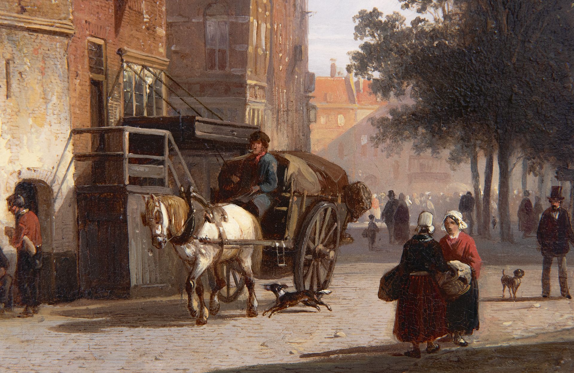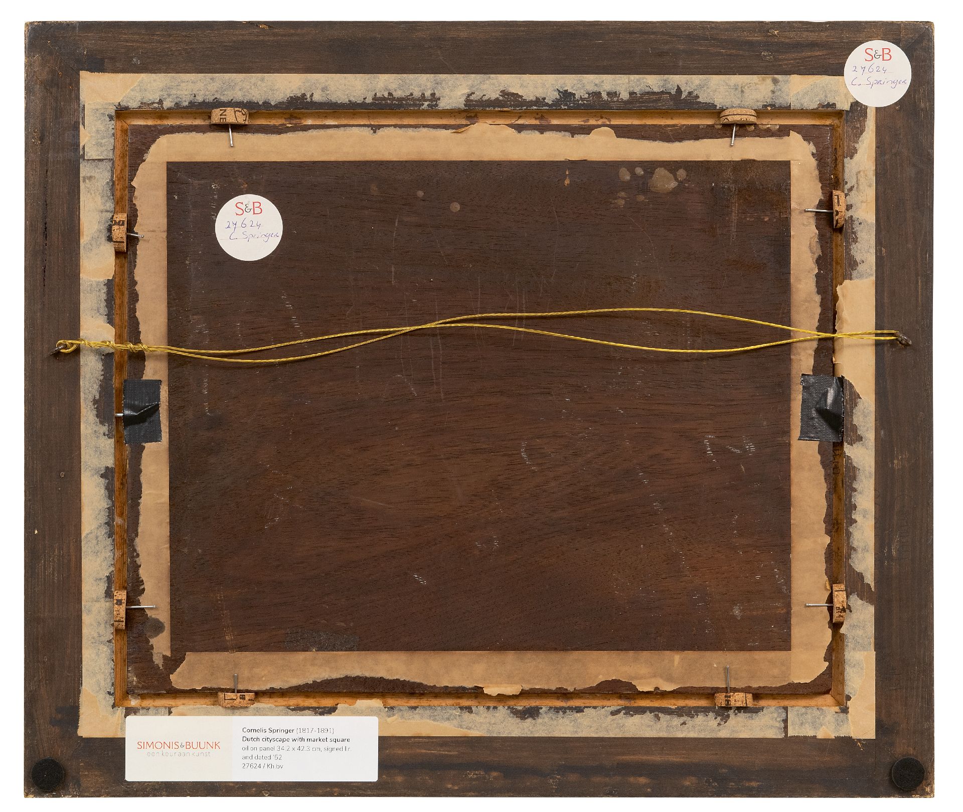 Cornelis Springer kunstwerk • schilderij • voorheen te koop Hollands stadsgezicht met marktplein