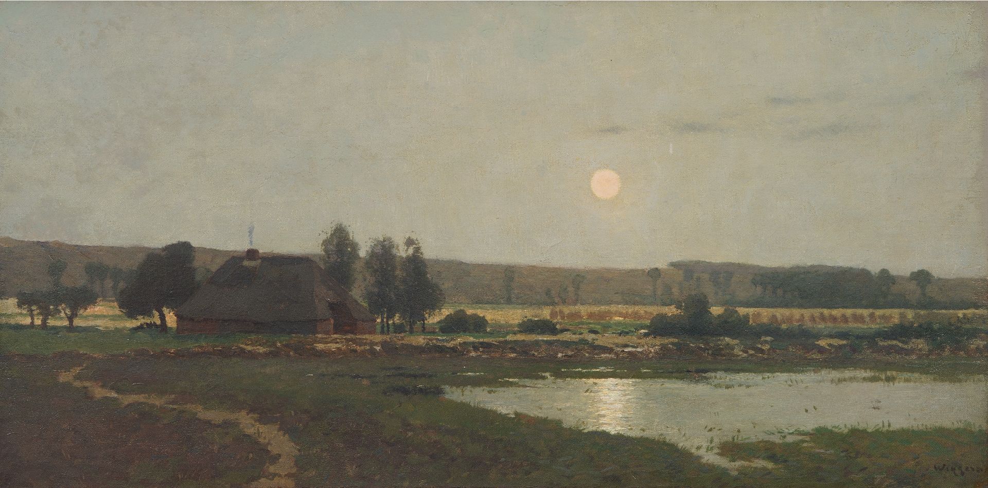 Wiggers D.  | Dirk 'Derk' Wiggers | Schilderijen te koop aangeboden | Meertje bij Nijmegen bij opkomende maan, olieverf op doek 40,8 x 80,2 cm, gesigneerd rechtsonder en te dateren ca. 1895, zonder lijst