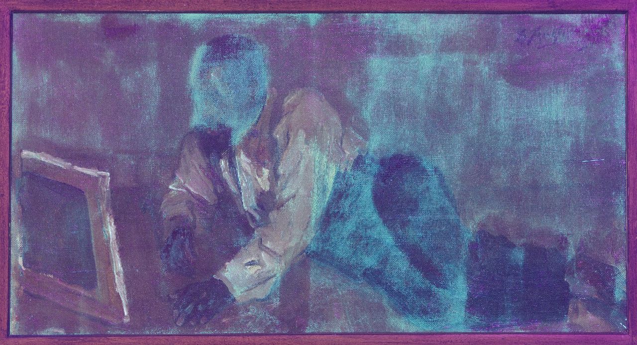 Eduard Frankfort wordt geen rabbijn zoals zijn Joodse vader in gedachten heeft. In plaats daarvan vertrekt hij naar het wereldse Amsterdam om daar aan de Rijksacademie te studeren. Aanvankelijk schildert hij bijbelverhalen en scènes uit het Joodse religieuze leven. Later zijn dat vooral genretaferelen en portretten in een donker kleurenpalet en met brede penseelstreken. Frankfort blijkt verknocht aan Amsterdam, ook na zijn studententijd blijft hij er wonen. Hij doet inspiratie op in het landelijke Drenthe en Het Gooi, maar ook in het buitenland. In 1905-1906 is hij enige maanden in Zuid-Afrika, waar hij vooral portretten maakt. Waarschijnlijk is dit portret er een van. Een zwarte man ligt in een ontspannen houding op de vloer. Liggend op zijn zij met opgetrokken knieën bekijkt hij aandachtig een schilderij. Frankfort heeft het misschien net af en vraagt om zijn mening? Hoe zou deze kunstliefhebber het beoordeeld hebben?