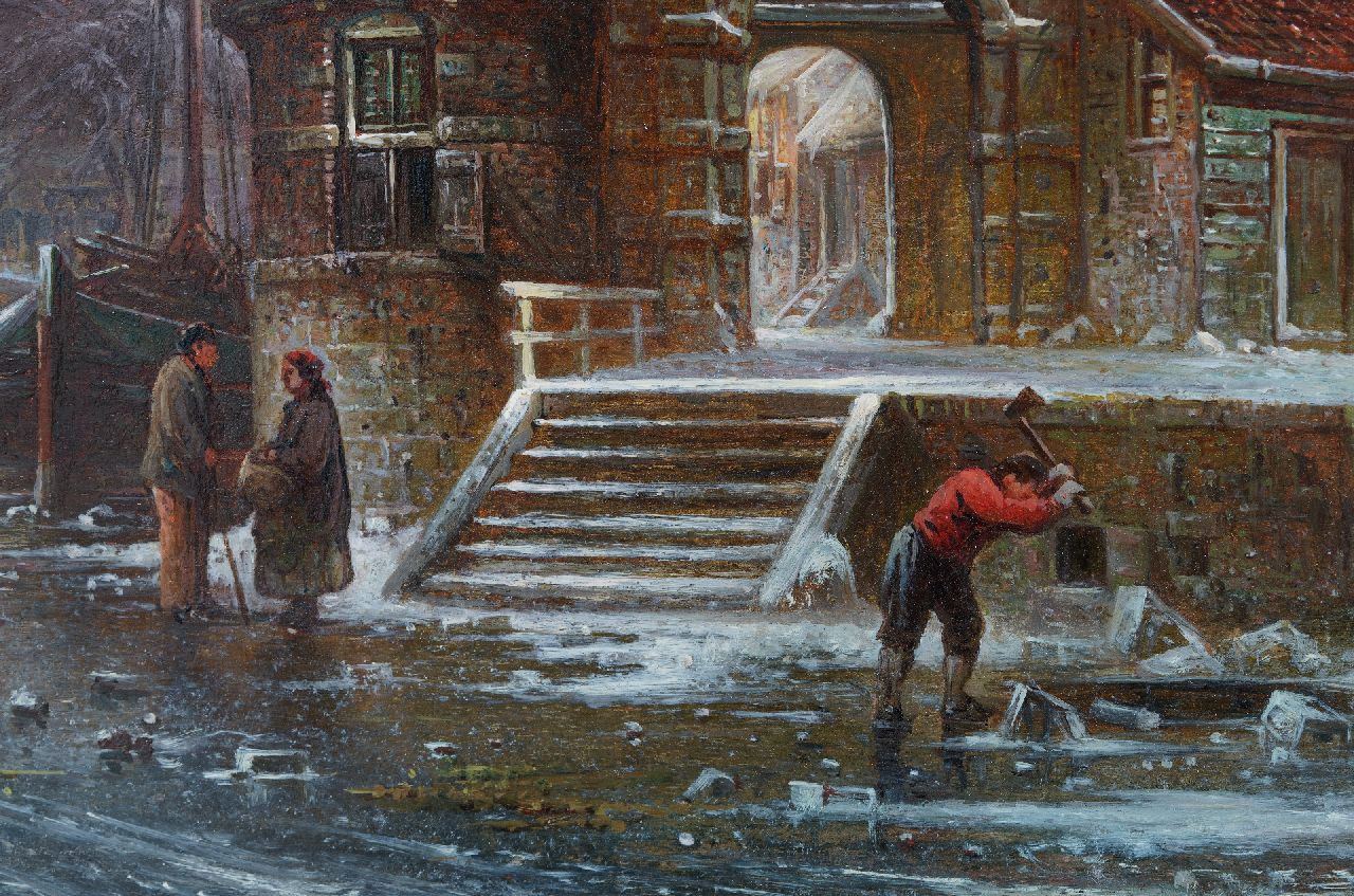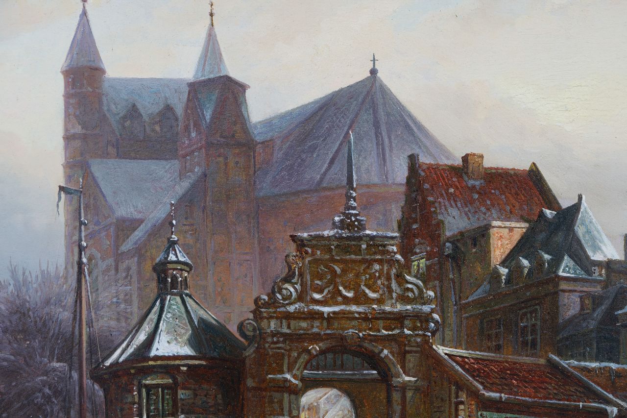 Elias Pieter van Bommel | Winters stadsgezicht met de Oude Kerk van Delft  (naar A. Eversen), olieverf op paneel, 33,2 x 27,4 cm