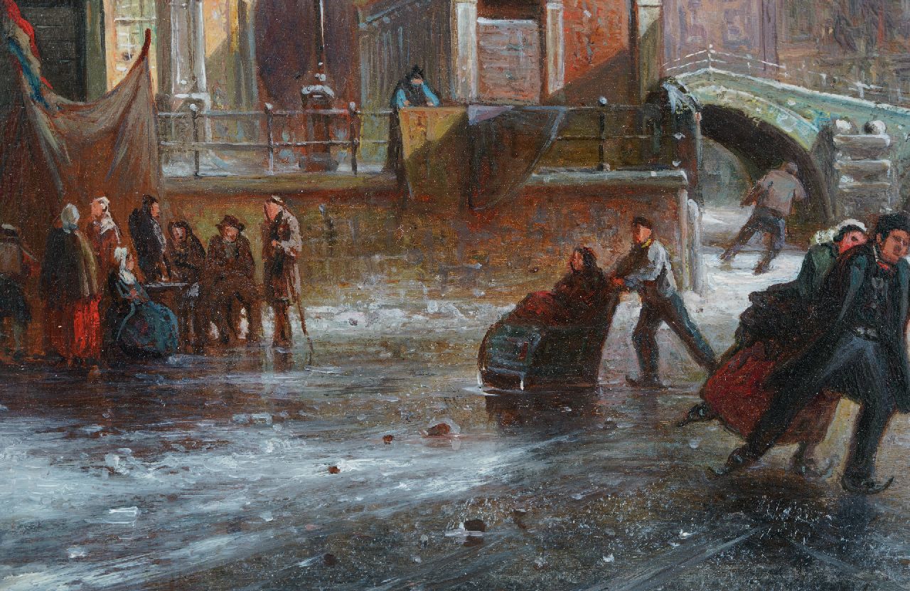 Elias Pieter van Bommel kunstwerk • schilderij • te koop Schaatspret op een stadsgracht