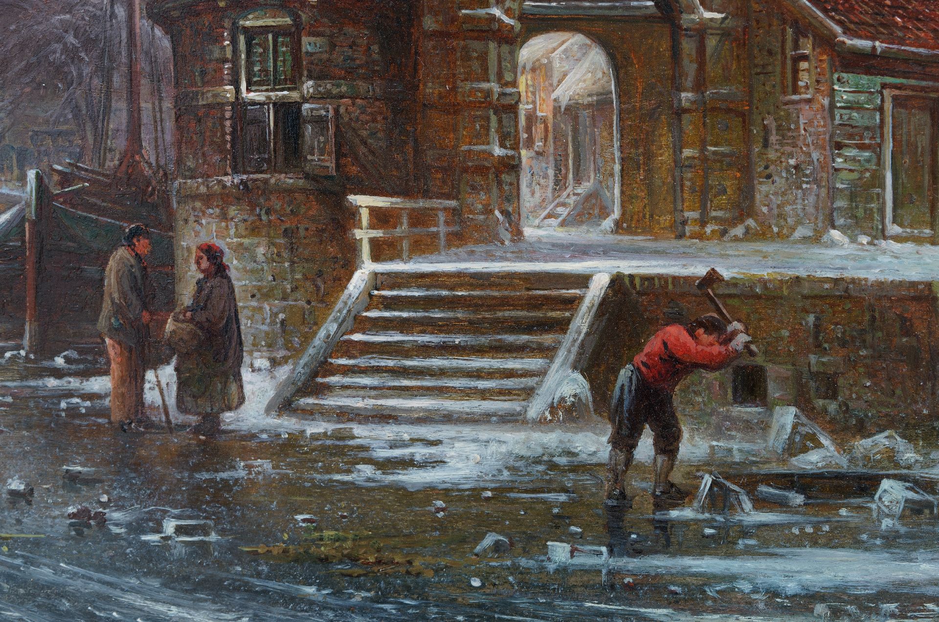 Elias Pieter van Bommel | Winters stadsgezicht met de Oude Kerk van Delft  (naar A. Eversen), olieverf op paneel, 33,2 x 27,4 cm