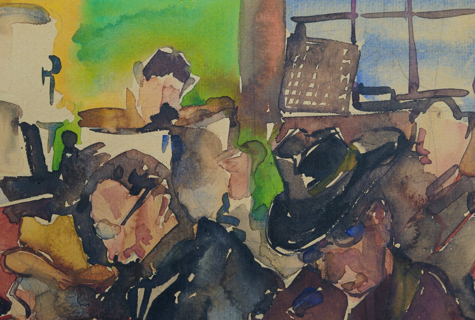 Ernest Albert kunstwerk • aquarel • tekening • te koop Dammen in het café
