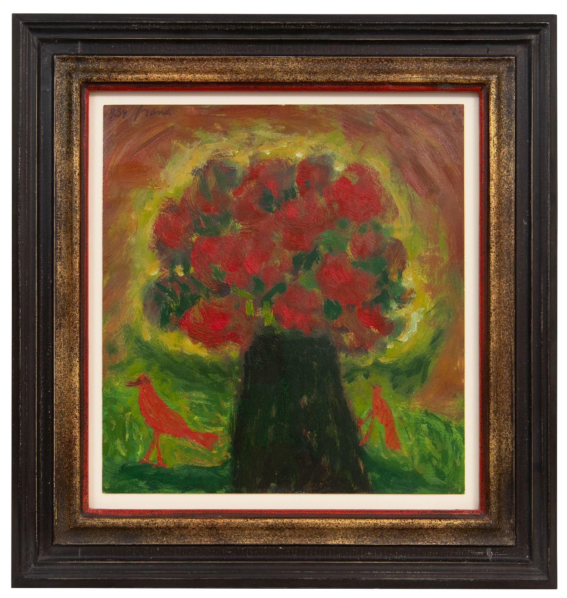 gouache en olieverf op papier 28,9 x 27,0 cm, gesigneerd linksboven en gedateerd 9.54