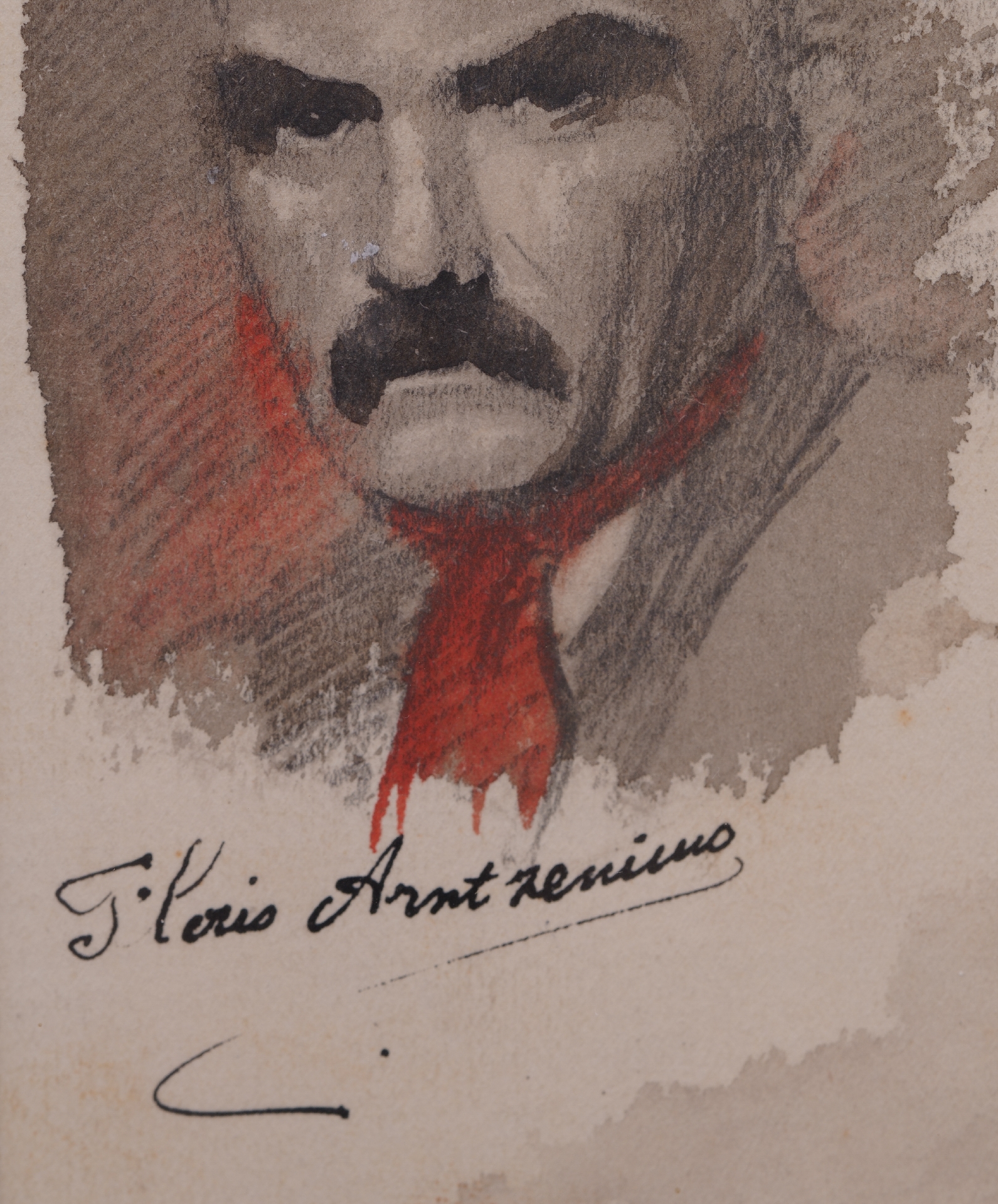 potlood, inkt en aquarel op papier 15,7 x 12,4 cm, gesigneerd links van het midden