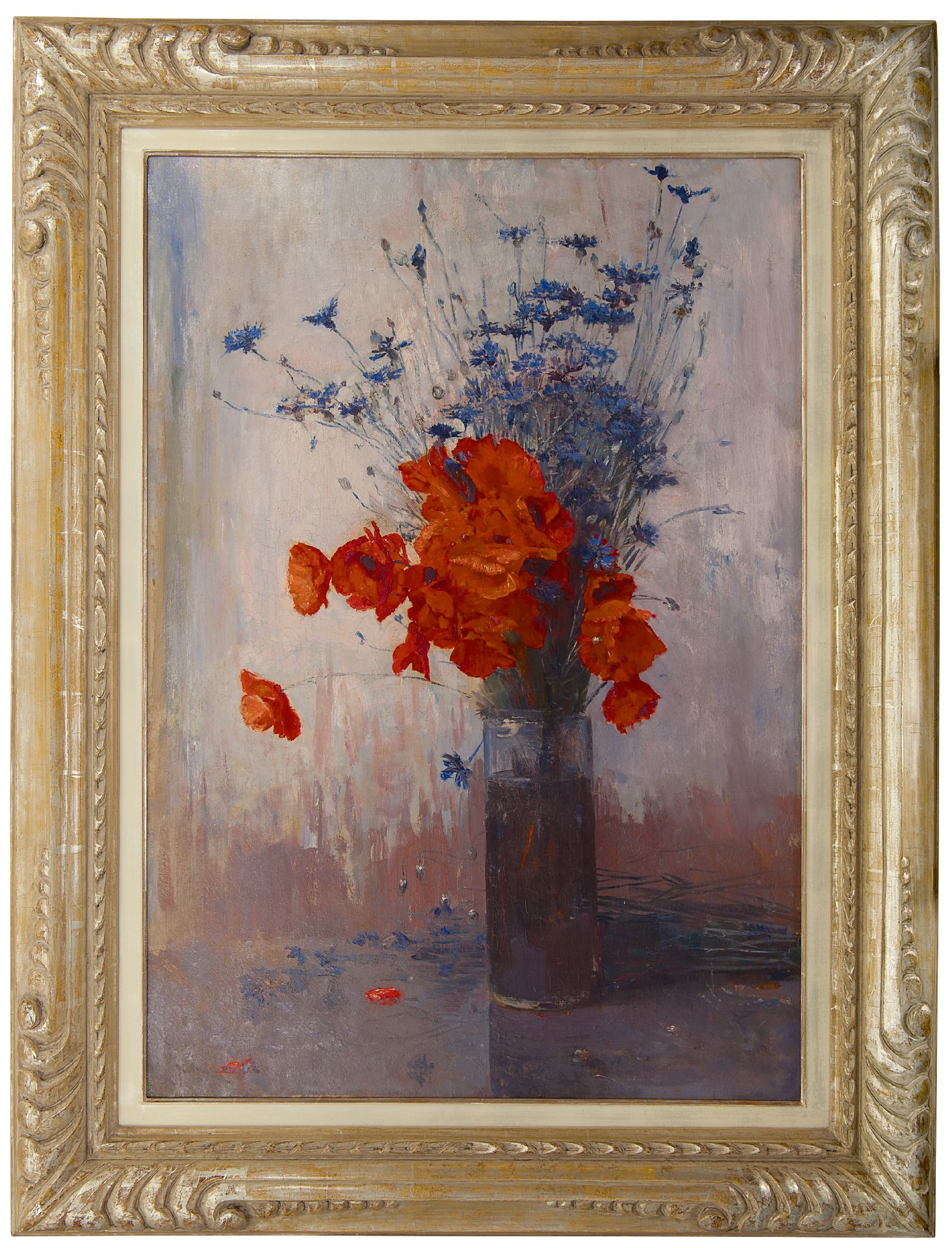 Frans Oerder kunstwerk • schilderij • voorheen te koop Klaprozen en korenbloemen in hoge vaas