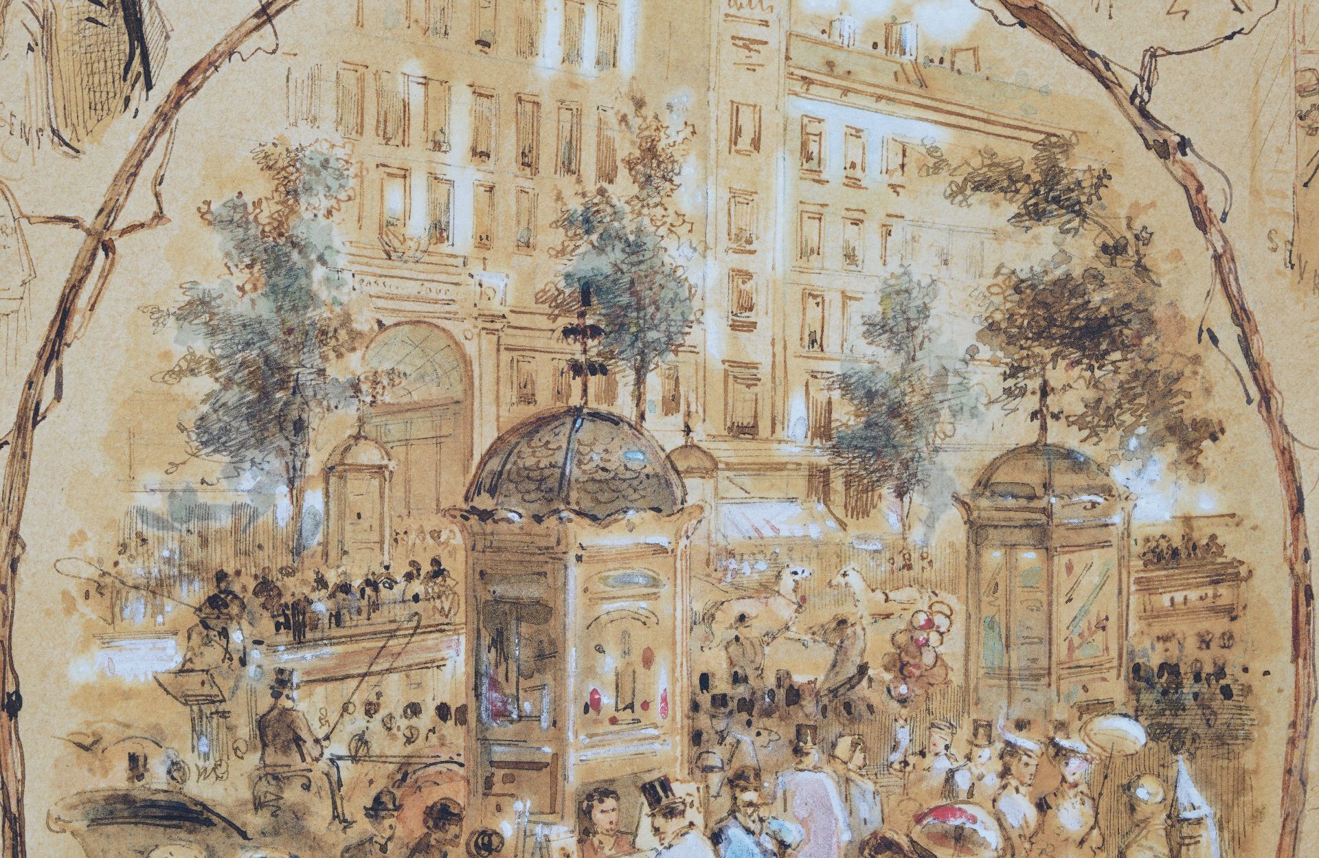 Franse School kunstwerk • aquarel • tekening • te koop Souvenirs de Paris