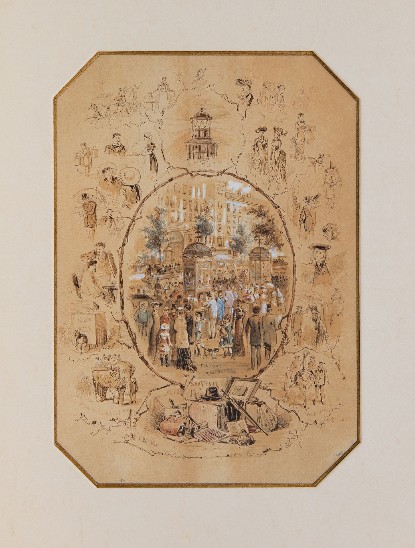 inkt, aquarel en gouache op papier 37,7 x 26,4 cm, gesigneerd linksonder met initialen 'C.R.s' en gedateerd 1881