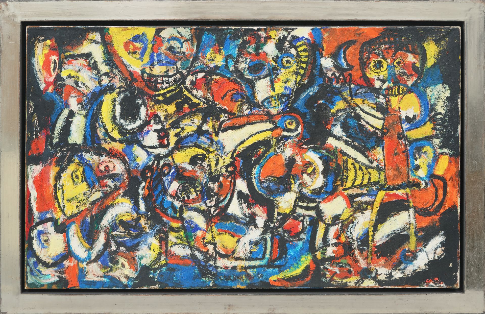 Gust Romijn kunstwerk • schilderij • te koop Compositie met figuren en dieren