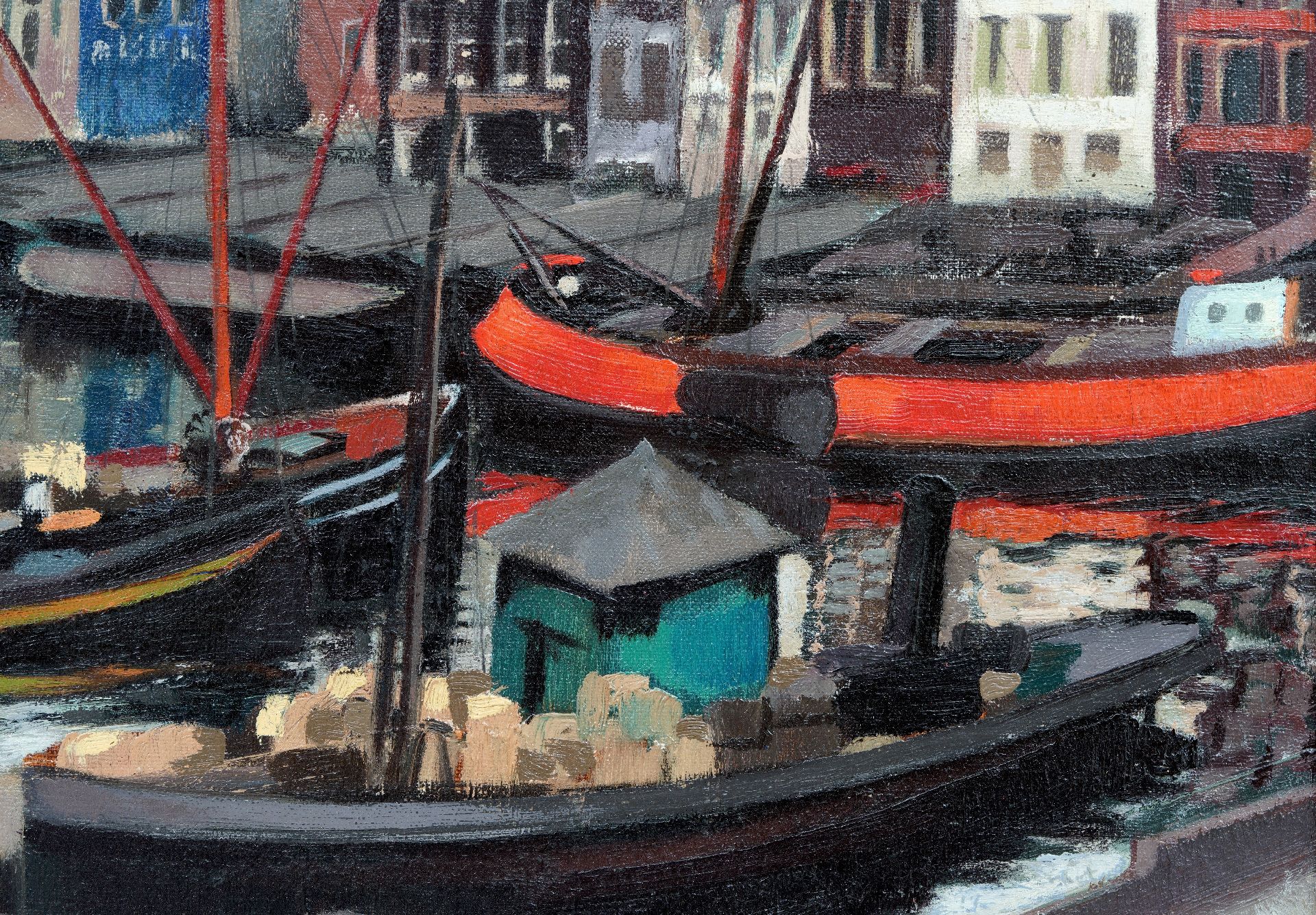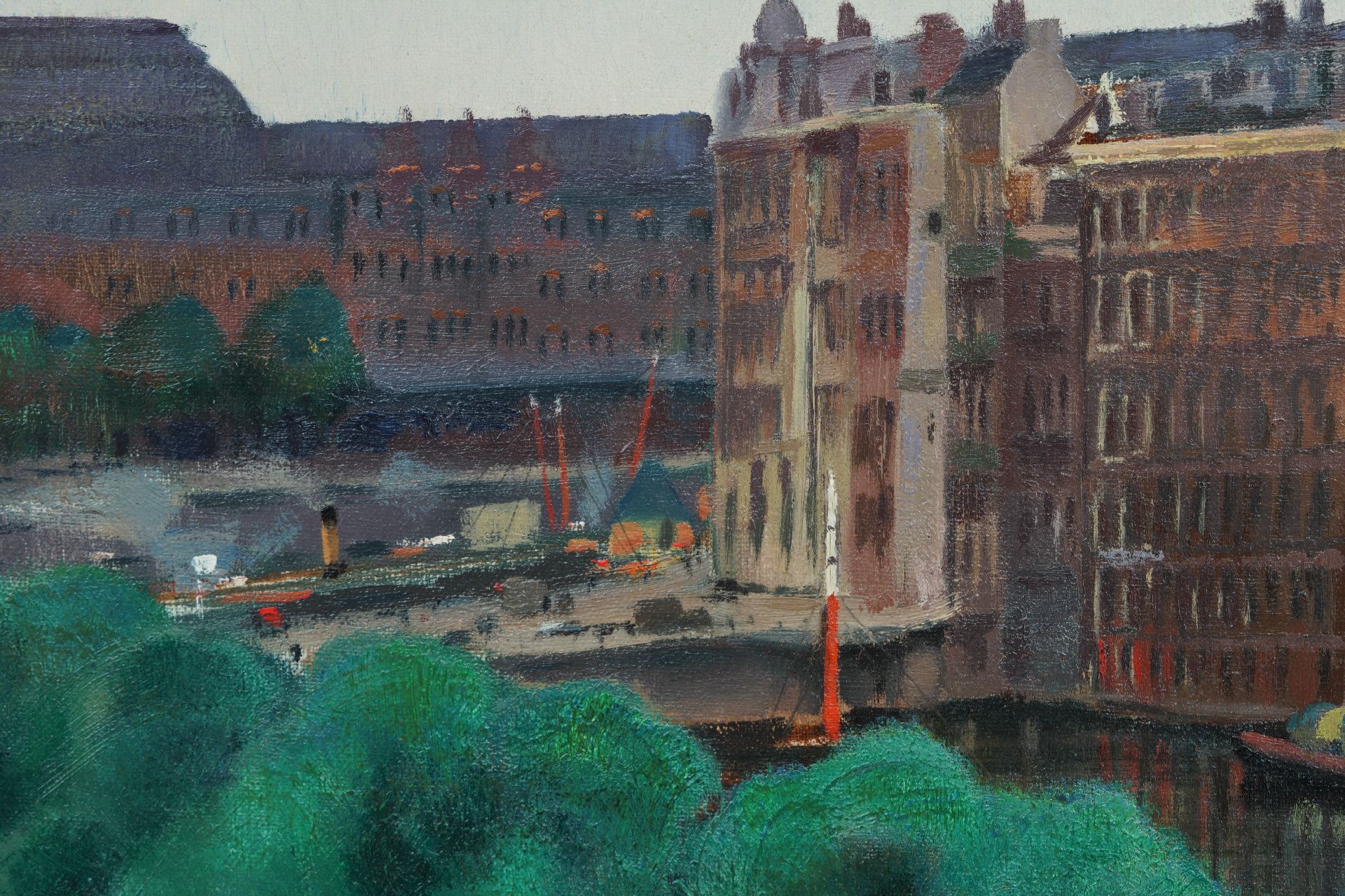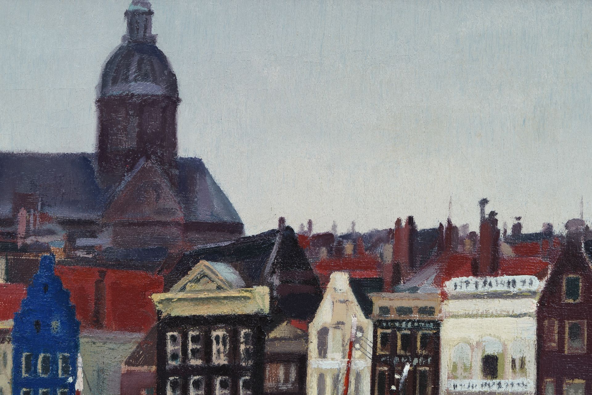Jack Hamel kunstwerk • schilderij • voorheen te koop Het Damrak in Amsterdam met zicht op de St.-Nicolaaskerk