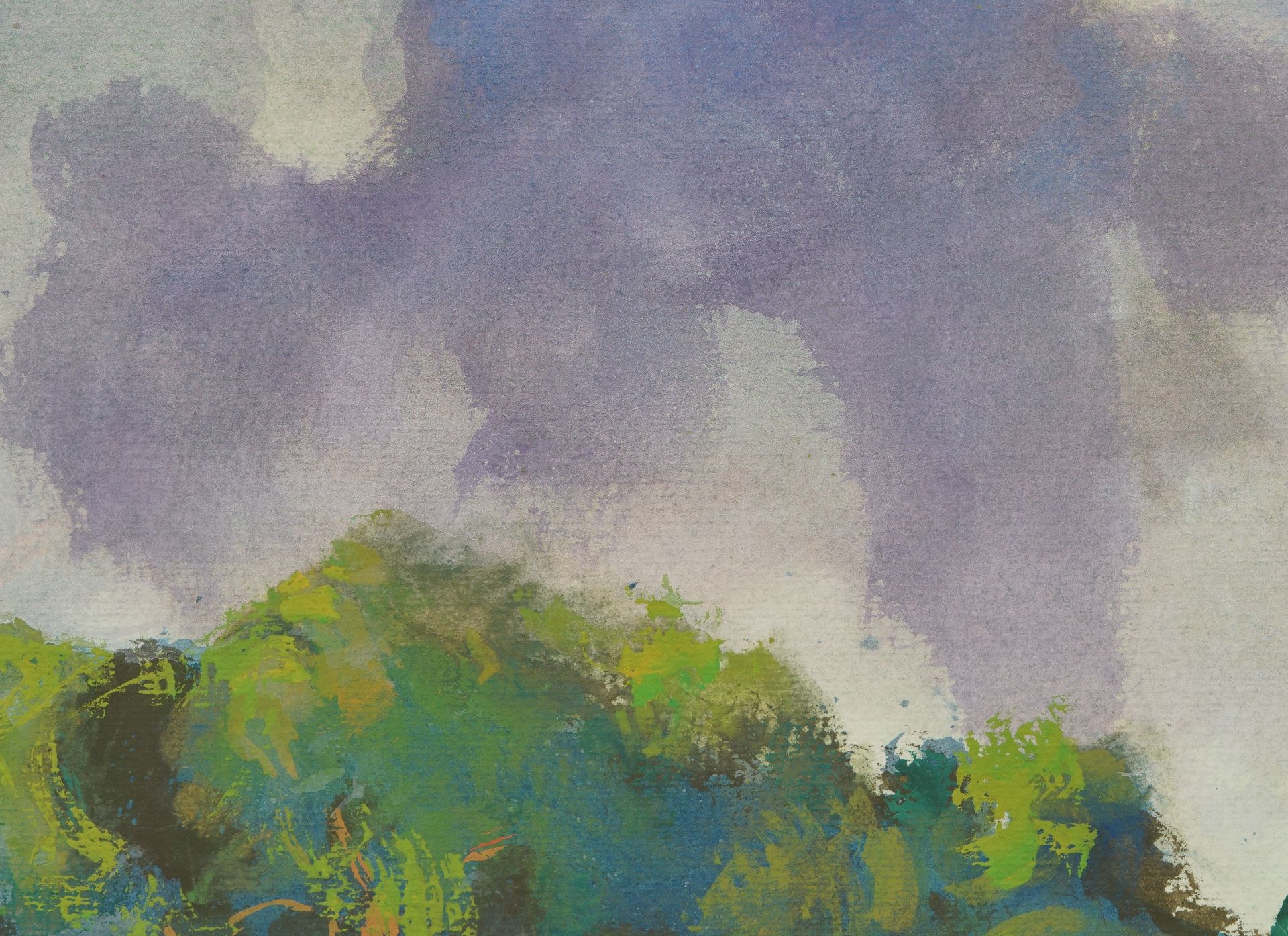 Jan Altink | Bosgezicht, krijt en aquarel op papier, 17,7 x 12,4 cm