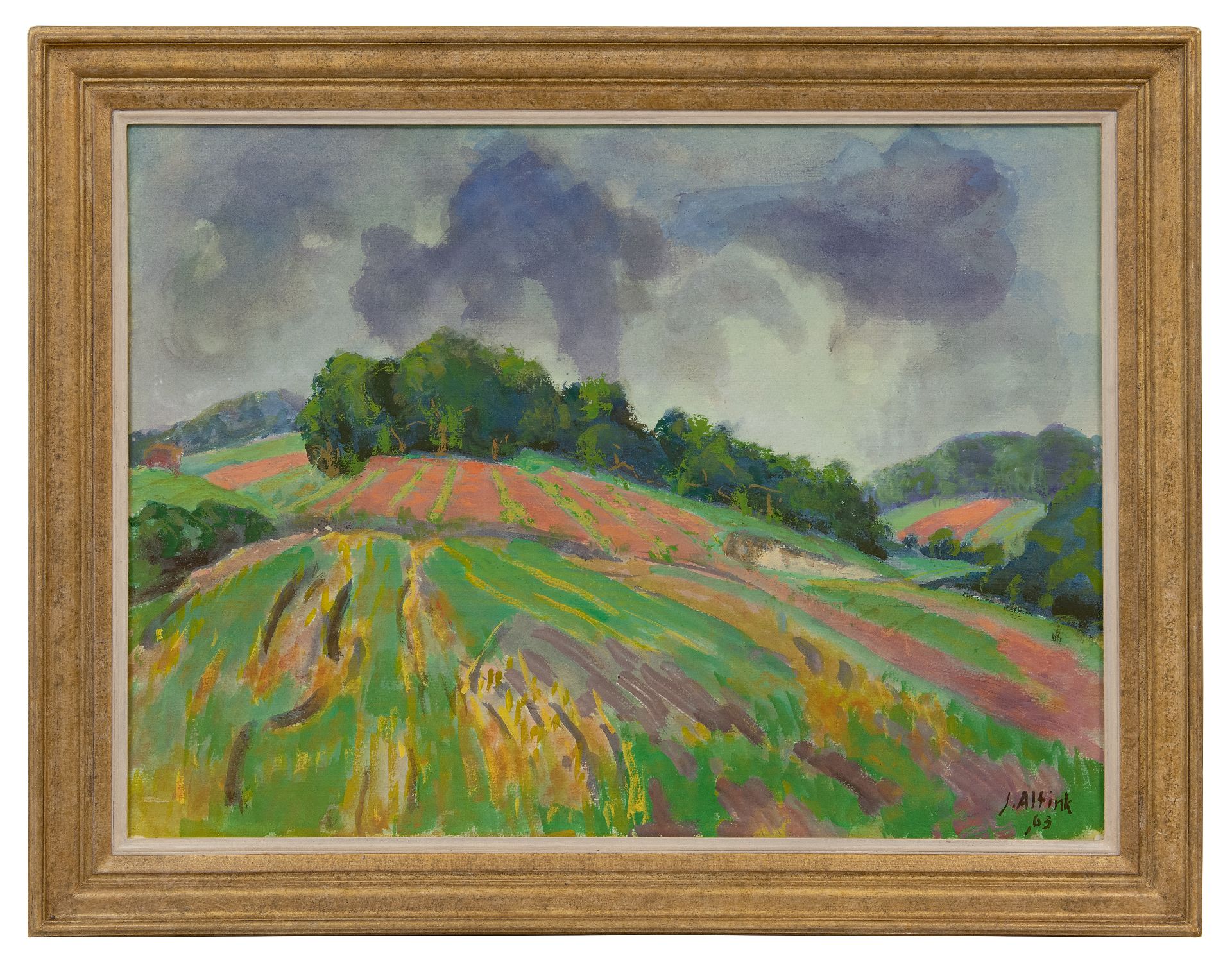 Jan Altink kunstwerk • aquarel • tekening • te koop Glooiend akkerlandschap