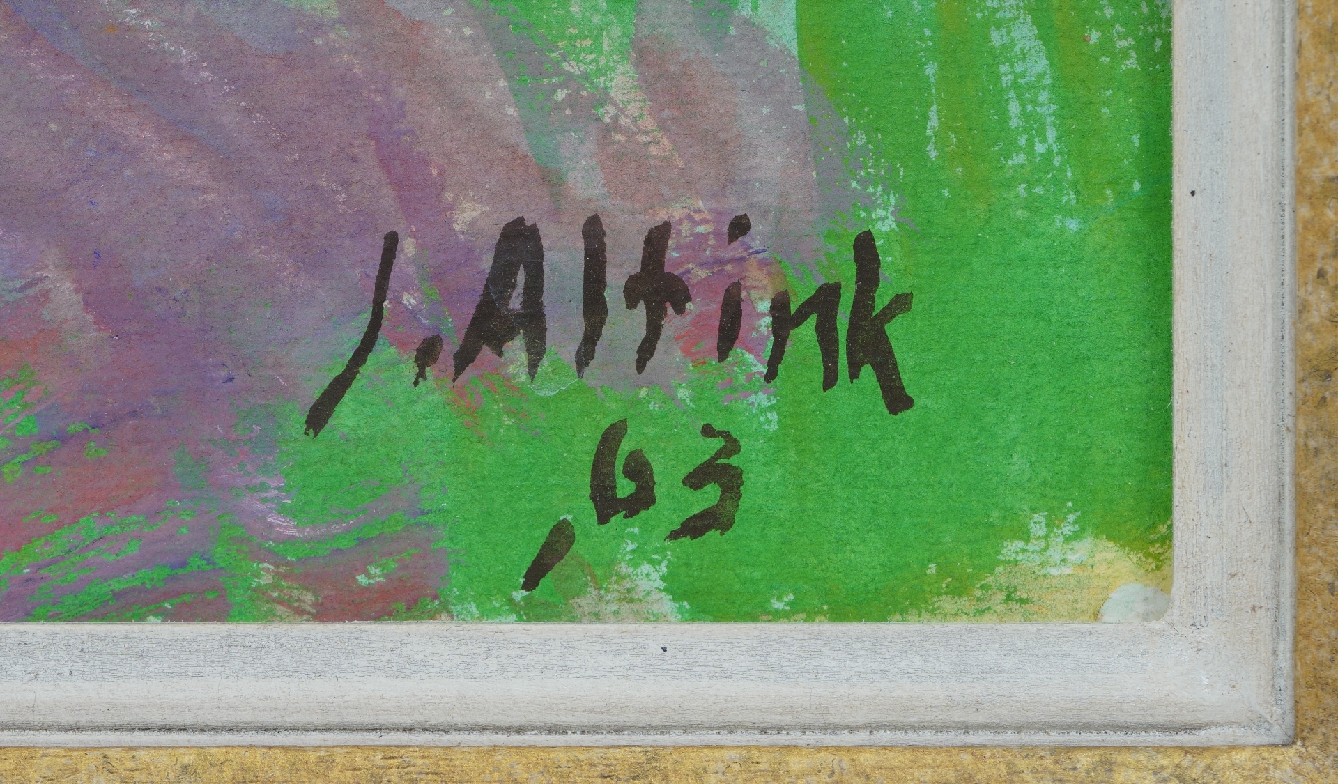 Jan Altink behoorde tot de Groninger kunstkring De Ploeg, waar hij zich van de andere leden onderscheidde door zijn grote voorliefde voor het buiten werken. Hij schilderde vooral landschappen en Groninger dorpsgezichten, daarnaast ook stadsgezichten en enkele portretten en stillevens. Aanvankelijk bevatte zijn palet vooral grijze en groene tinten maar na 1924 brak een heftig expressionistische periode aan. In wasverf, met sterke, felle kleuren en in vereenvoudigde vormen registreerde hij de werkelijkheid. Zijn latere werk is meer lyrisch-impressionistisch van aard.