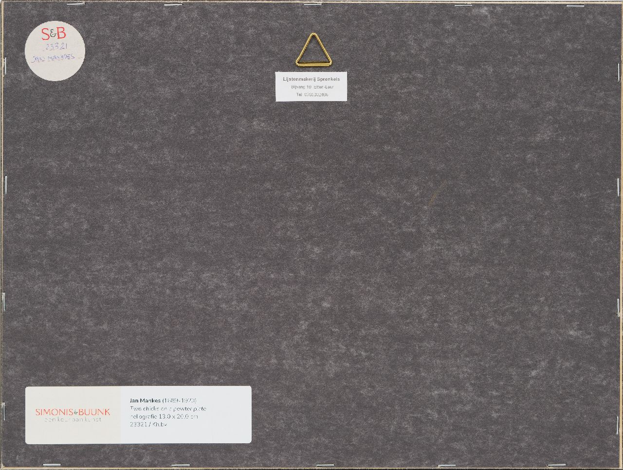Jan Mankes kunstwerk • grafiek • voorheen te koop Twee kuikens op een tinnen bord