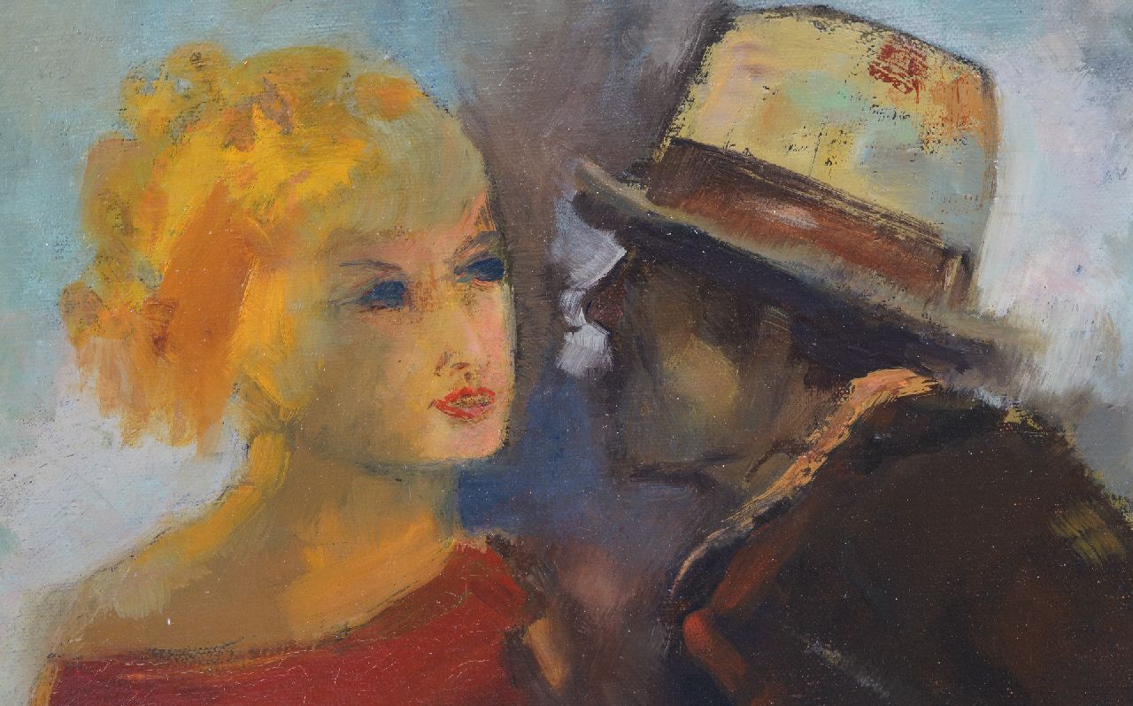 Jan Rijlaarsdam kunstwerk • schilderij • te koop Een intiem gesprek