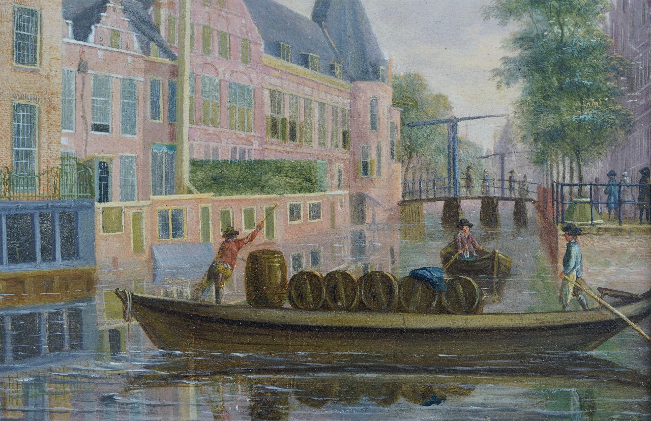 Jan ten Compe kunstwerk • schilderij • te koop Gezicht op de Amstel met de huizen aan de Doelenstraat en de Kloveniersdoelen, Amsterdam