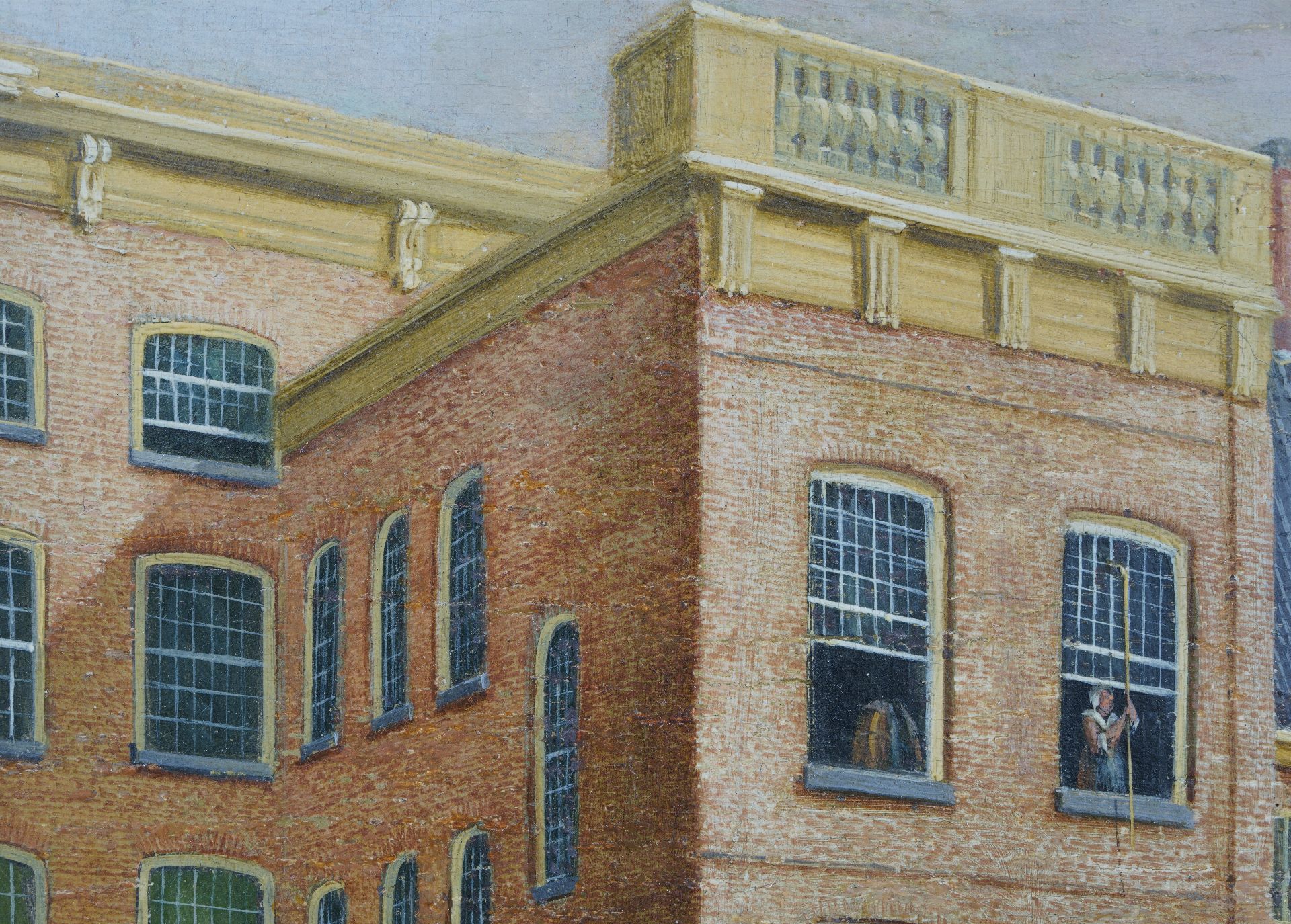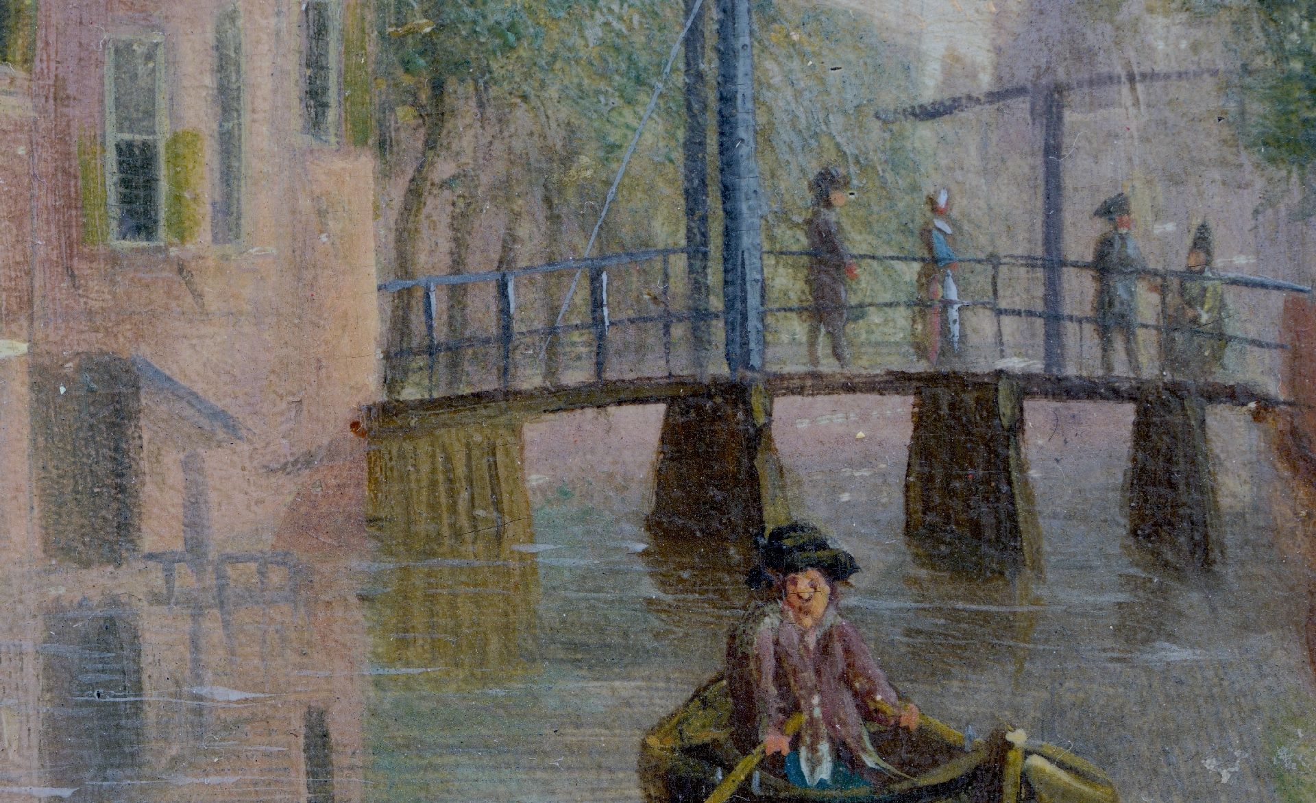 Jan ten Compe kunstwerk • schilderij • te koop Gezicht op de Amstel met de huizen aan de Doelenstraat en de Kloveniersdoelen, Amsterdam