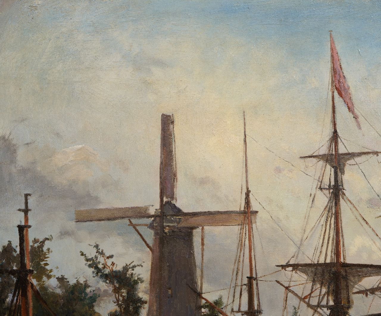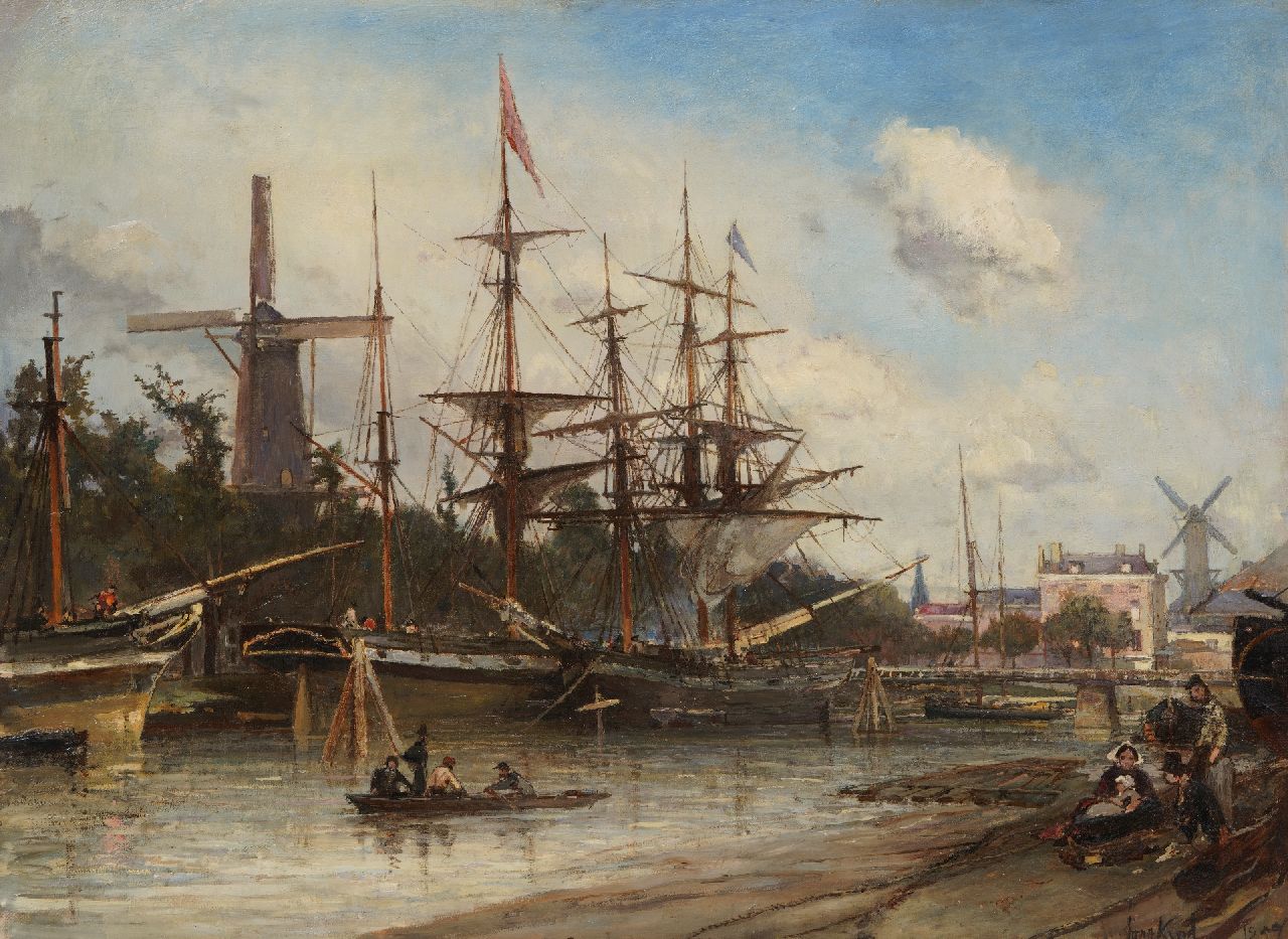 Johan Barthold Jongkind kunstwerk • schilderij • te koop Afgemeerde schepen in de haven van Rotterdam