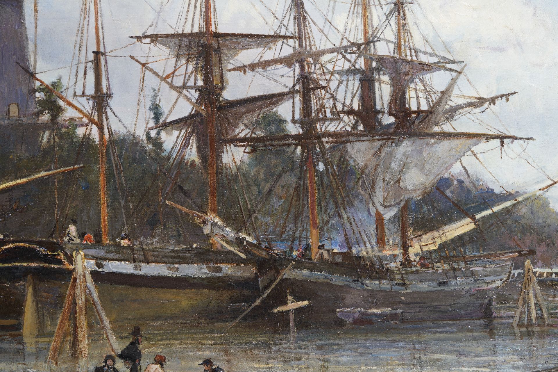 Johan Barthold Jongkind kunstwerk • schilderij • te koop Afgemeerde schepen in de haven van Rotterdam
