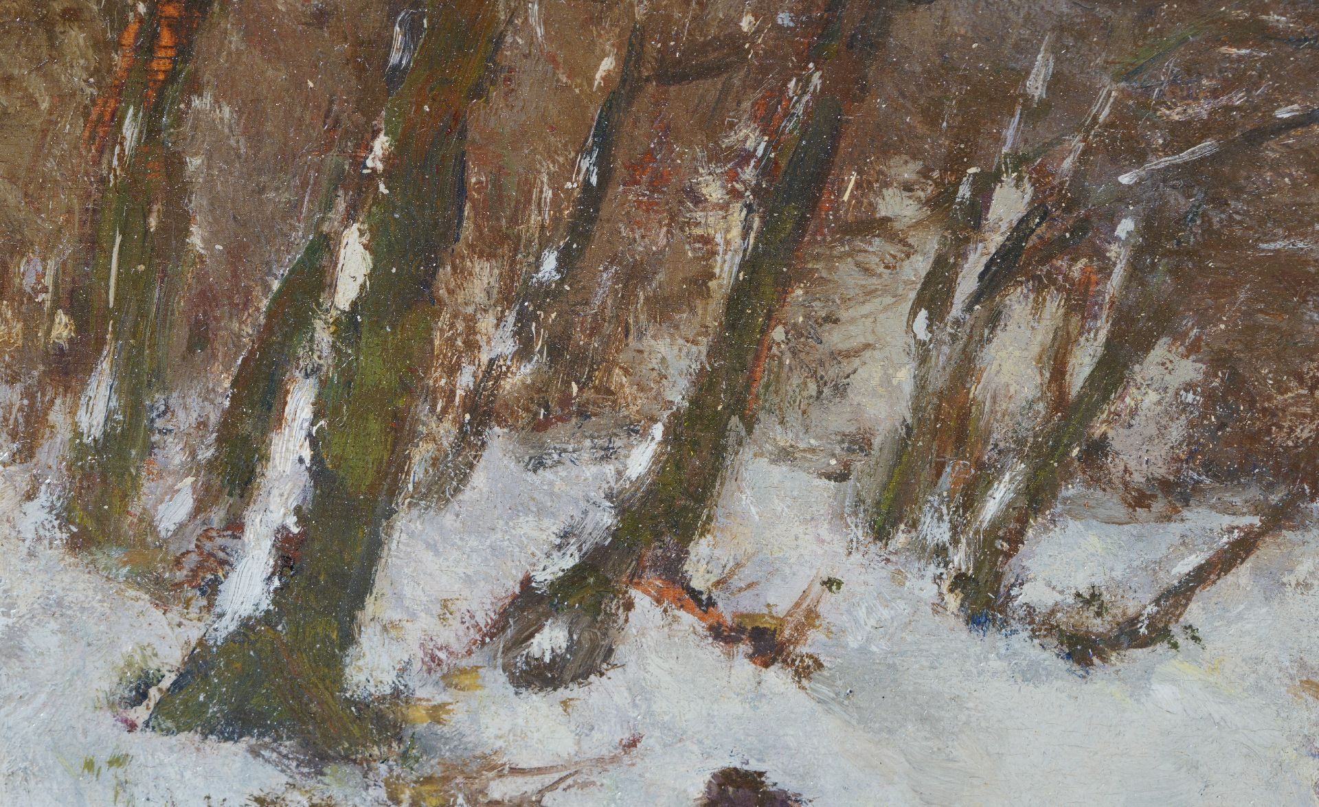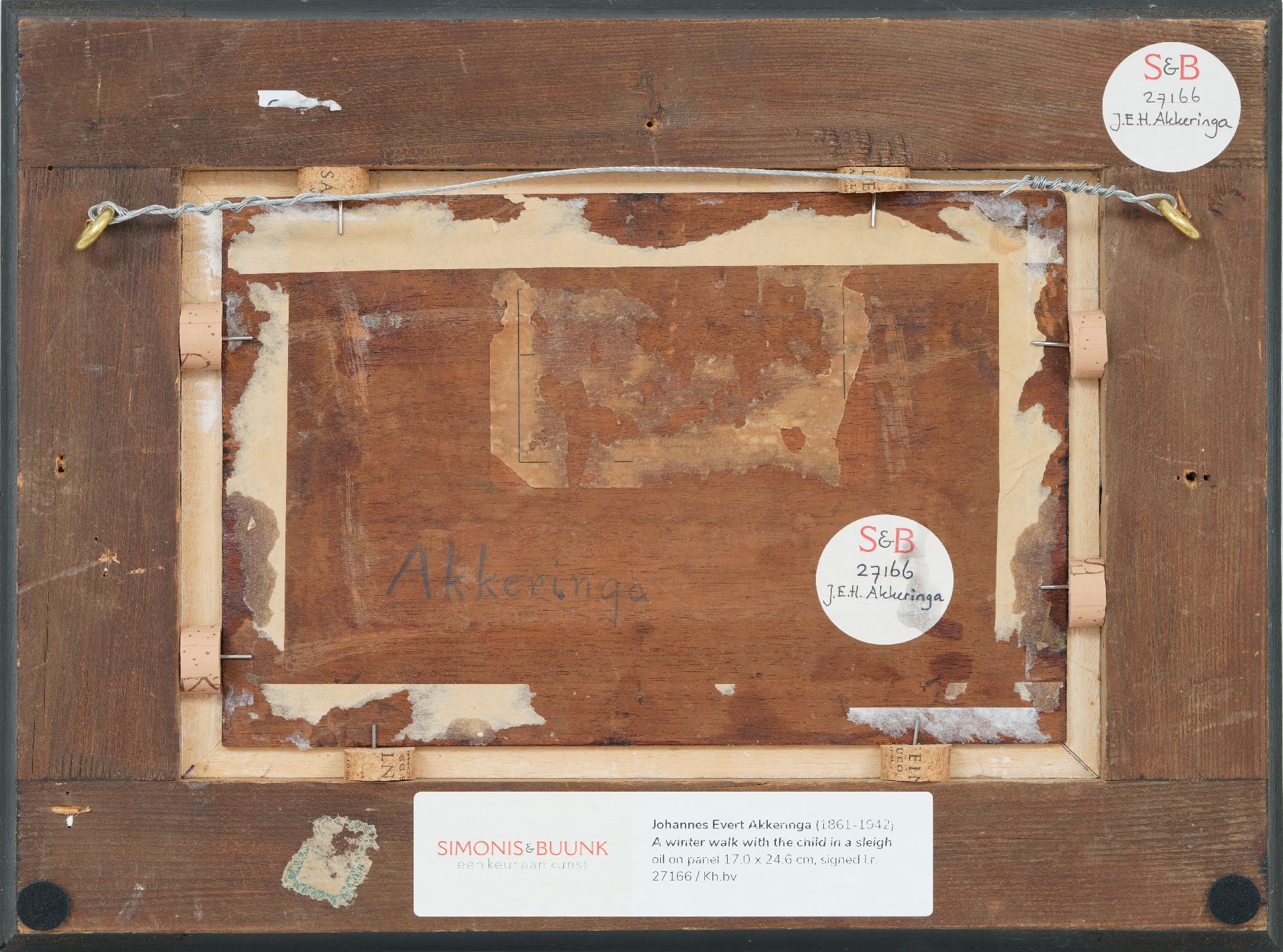 Johannes Evert Akkeringa kunstwerk • schilderij • te koop Winterse wandeling met het kindje in de slee