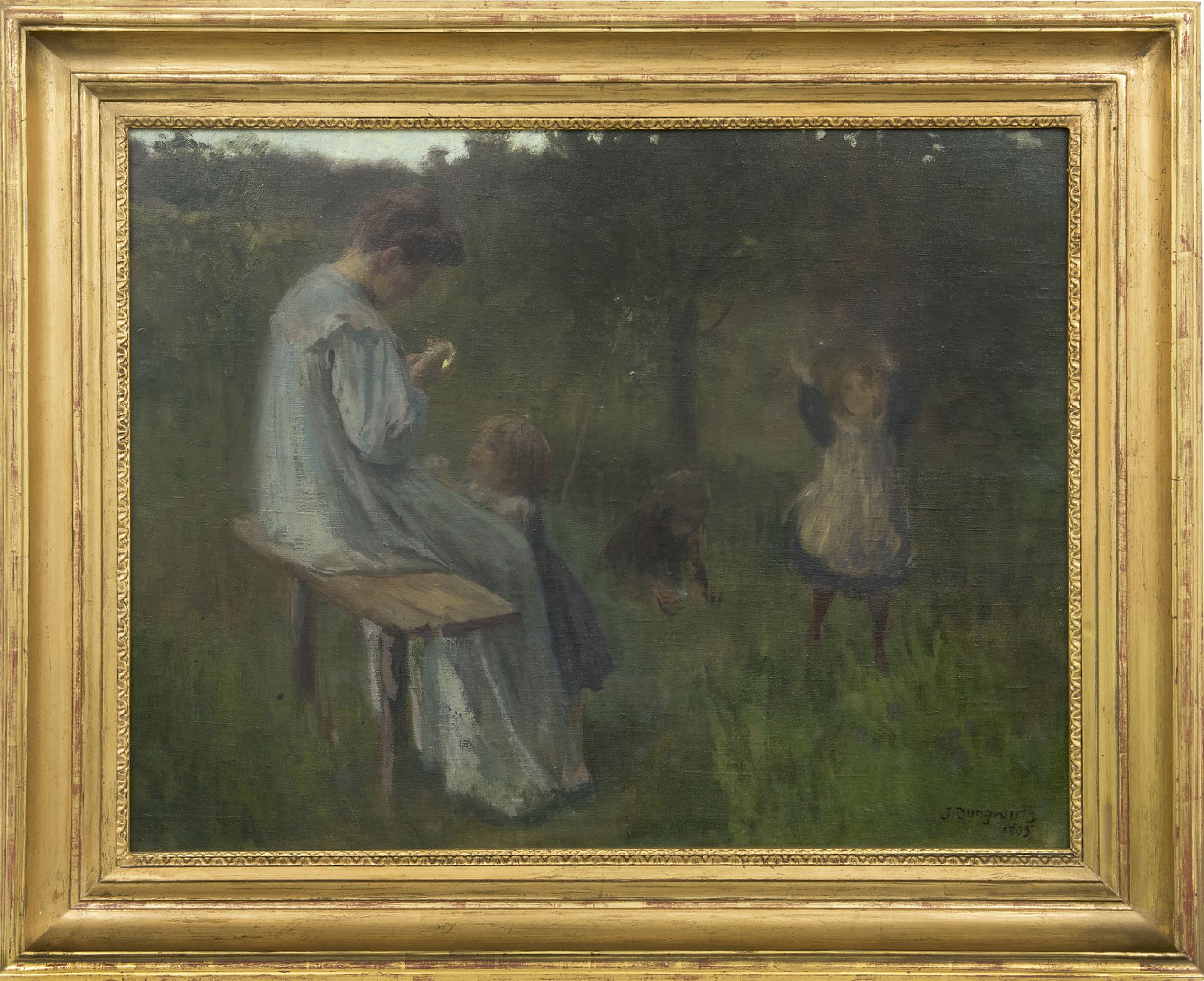 Joseph Jungwirth kunstwerk • schilderij • voorheen te koop Moeder met spelende kinderen