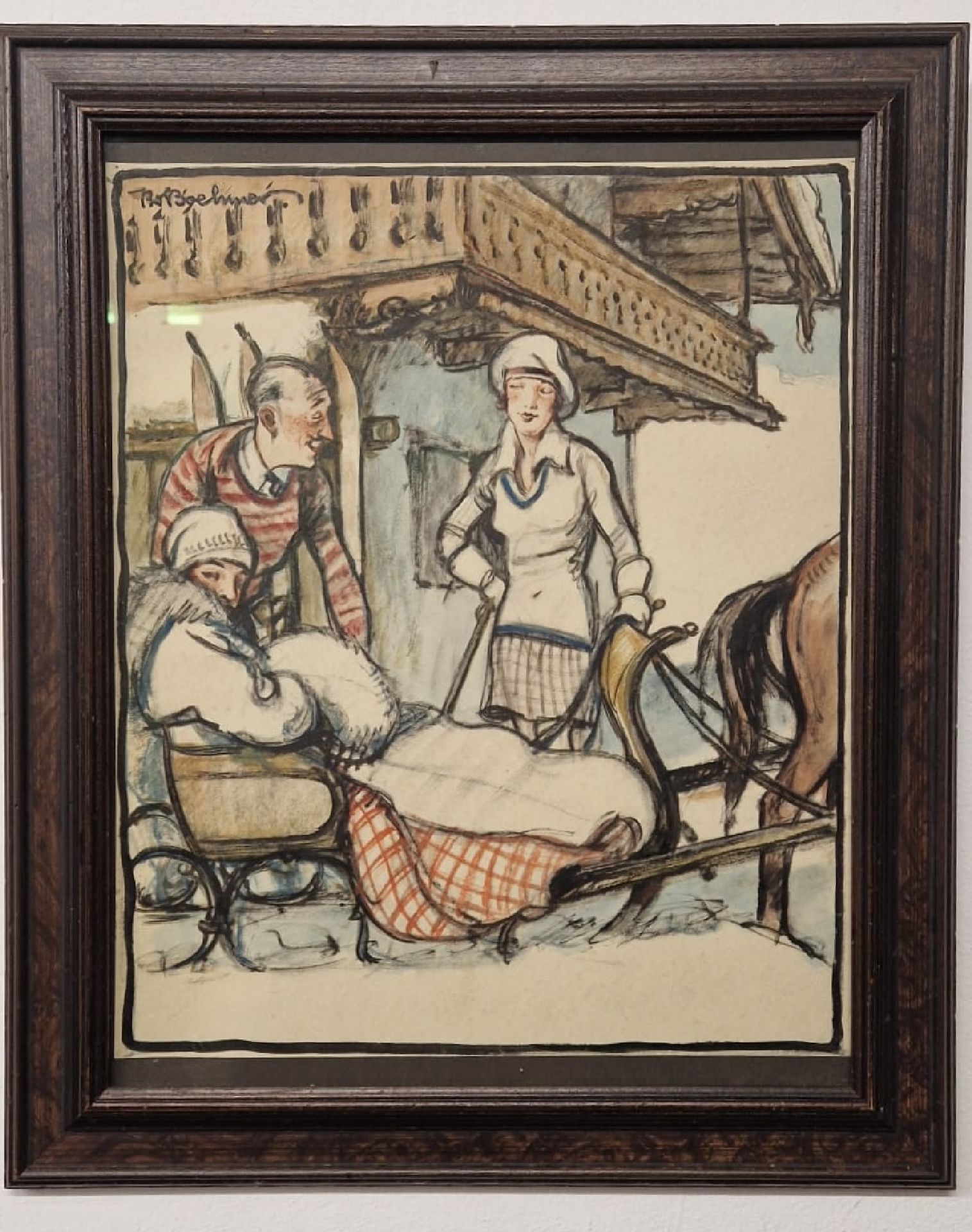 Karl Wolfgang Boehmer kunstwerk • aquarel • tekening • voorheen te koop Met de arrenslee