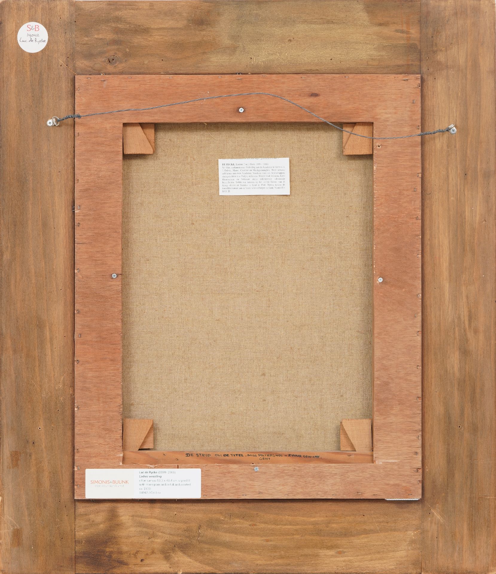 De Belgische Luc de Rycke was vrij kunstschilder en werkte tevens als toneeldecorateur aan de beide schouwburgen in zijn geboorteplaats Gent. In zijn vrije werk had De Rycke een voorkeur voor landschappen, stadgezichten en stillevens, die hij schilderde in een naar pointillisme neigend impressionisme. Dit figuurstuk is letterlijk en figuurlijk steviger van aard: worstelende vrouwen die met een breed penseel als massieve vormen op het doek gezet zijn. Rondom zijn verschillende motieven te zien, die gezamenlijk een ietwat vervreemdend effect geven. De Ryckes ervaring als toneeldecorateur speelt hier wellicht mee: het op de achtergrond toevoegen van attributen voor een extra verhalend element.