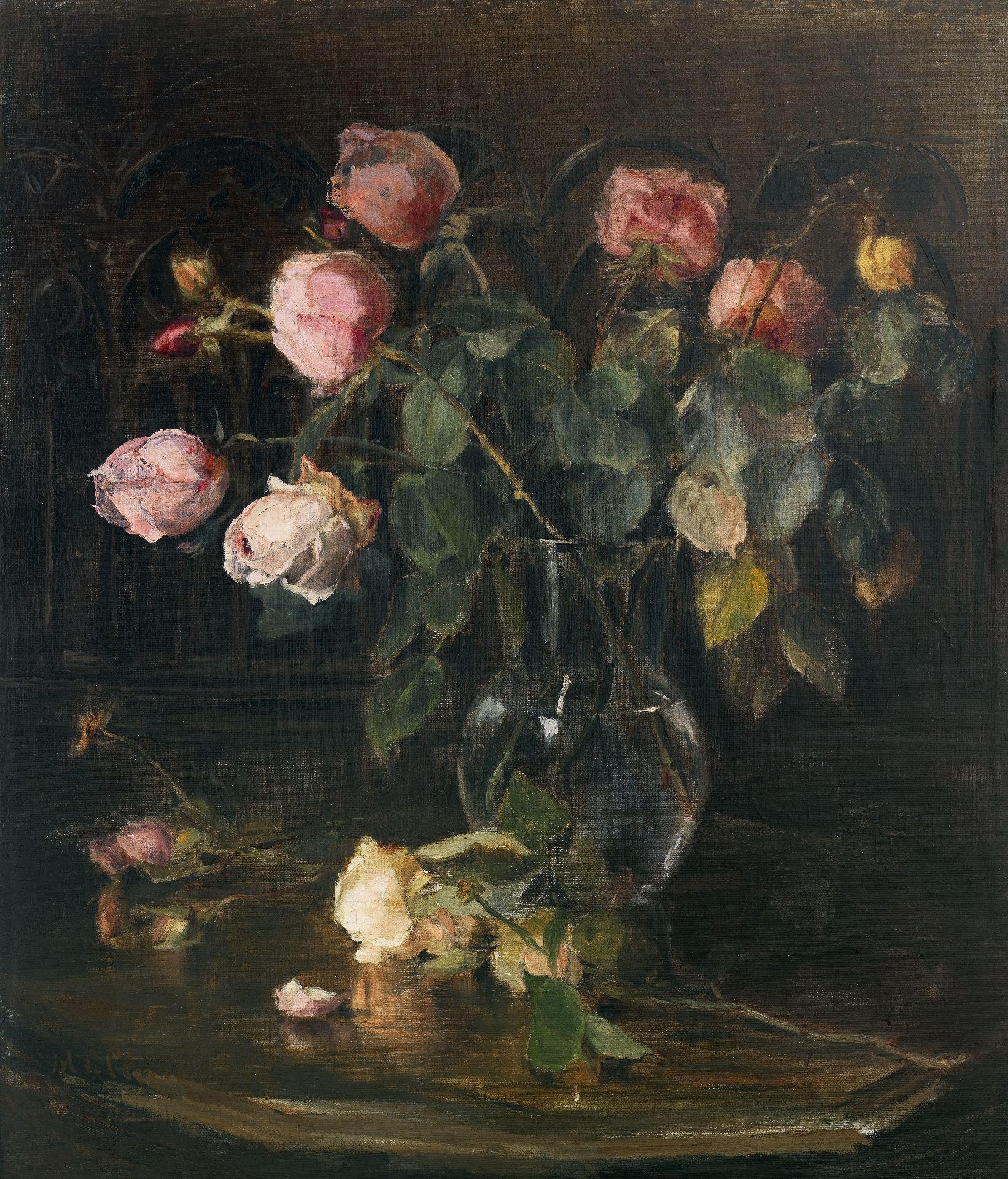 Marguérite Carolina de Clerq kunstwerk • schilderij • voorheen te koop Rozen in glazen vaas