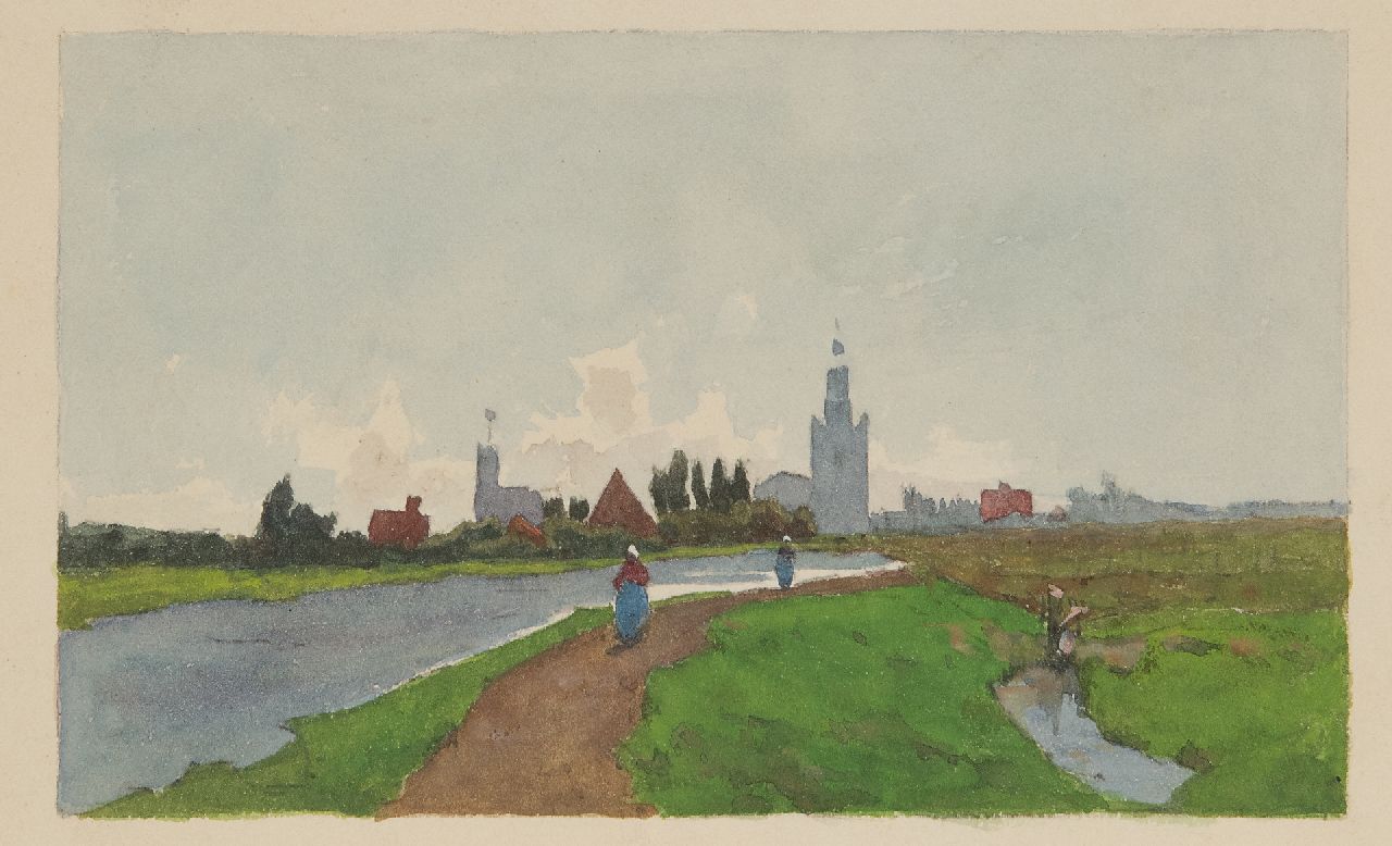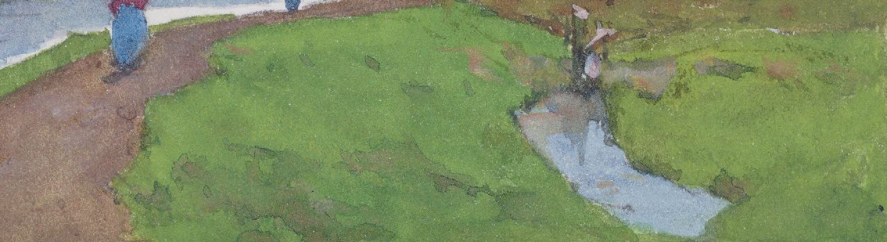 Gidding M.  | Marinus Gidding | Aquarellen en tekeningen te koop aangeboden | Figuren op een jaagpad, aquarel op papier 9,9 x 16,3 cm