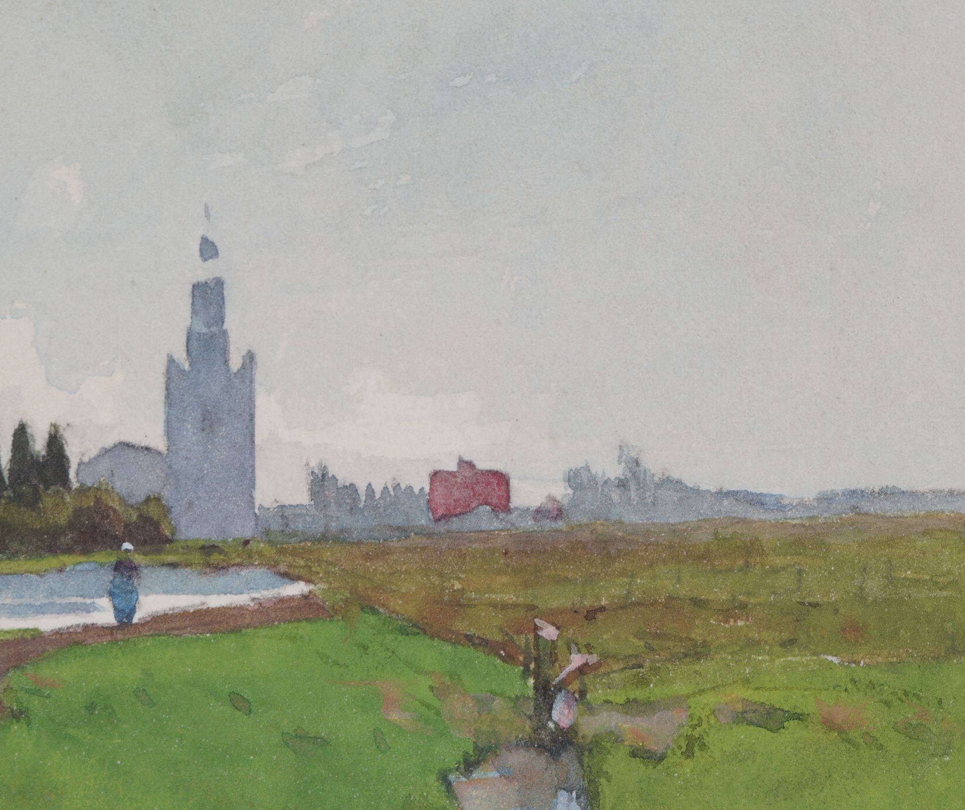 Marinus Gidding kunstwerk • aquarel • tekening • te koop Figuren op een jaagpad