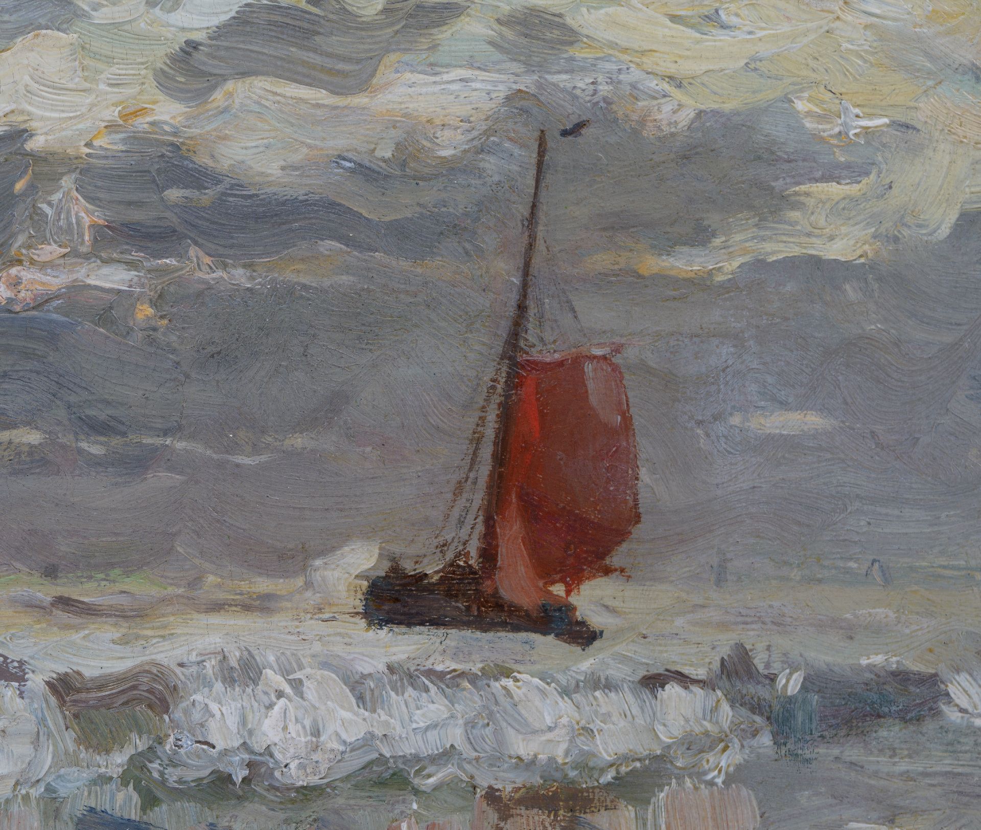 Morgenstjerne Munthe | Bomschuit voor anker, olieverf op doek, 62,9 x 96,4 cm, gesigneerd l.o.