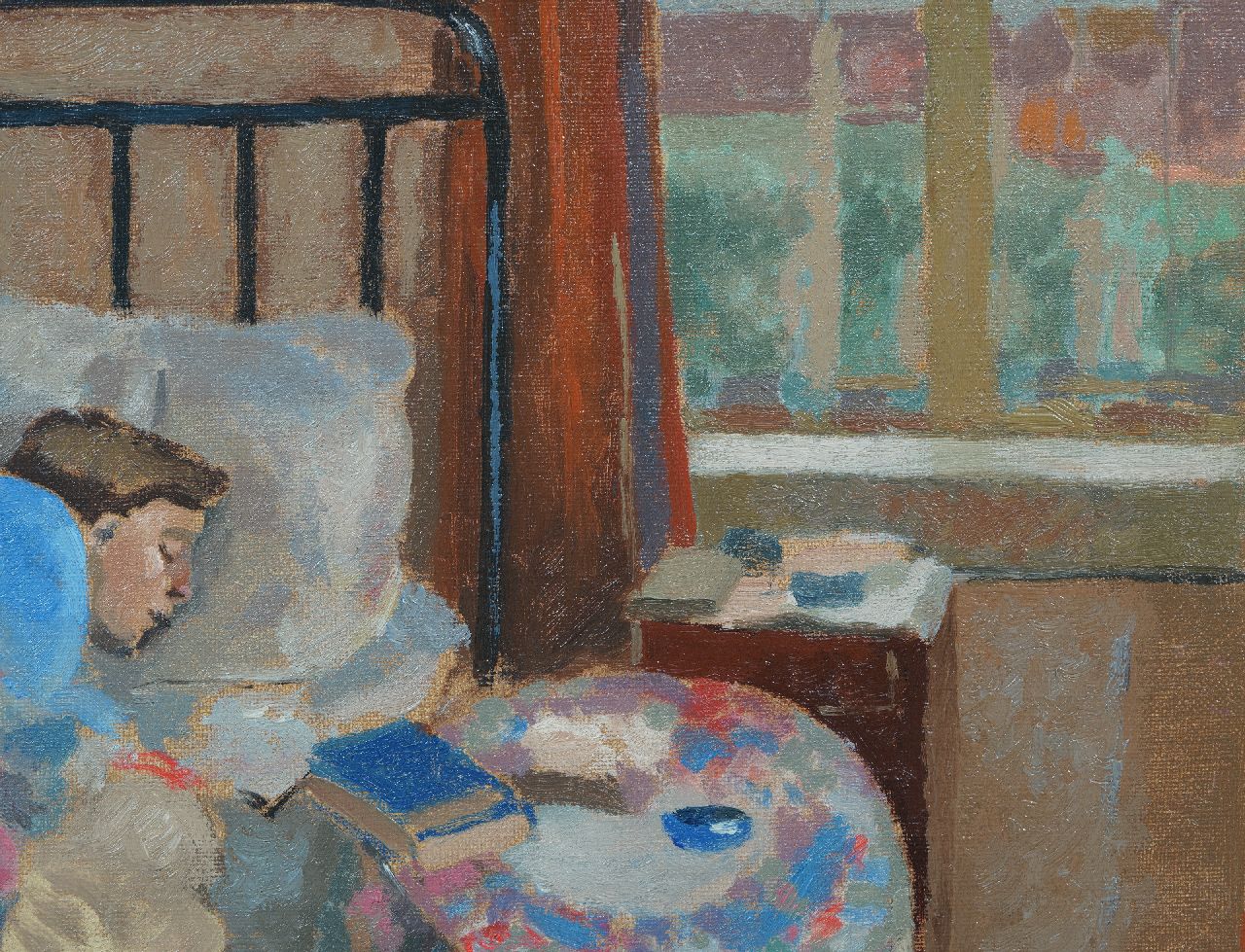 Otto de Kat wordt soms een 'intimist' genoemd, een schilder die zijn motieven bij voorkeur ontleende aan zijn eigen omgeving: zijn vrouw, zijn interieur, het landschap en zijn huis-atelier in de Auvergne. Zijn grote voorbeeld daarbij was Pierre Bonnard. De Kat begon zijn schildersloopbaan toen hij in 1928 vertrok naar Parijs, waar hij beïnvloed werd door het impressionisme. Terug in Nederland schilderde hij vooral portretten en interieurs. Daarin legde hij zijn eerste indrukken van sfeer, licht en kleur vast, nadat deze waren bezonken en alleen de essentie was overgebleven. Na vestiging in Ukkel (1938) rijpte dit 'bezonken impressionisme' tot steeds lossere en abstractere vormen in een prachtig koloriet. Toen dit schilderij dit jaar in museum JAN in Amstelveen te zien was schreef de recencent van het NRC erover: (...) 'in die eerste zaal hangt ook een opvallend eigen – want intiem, persoonlijk en ontroerend – schilderij, waarschijnlijk een portret van zijn eerste vrouw, Hans van Zijl. Je ziet haar liggen onder een kleurige sprei, de gordijnen zijn geopend en er is daglicht, dus misschien doet ze een middagslaapje, op een tafeltje een paar boeken – ze was dichteres. Misschien, denk je als je ervoor staat, is dit schilderij wel zo geslaagd doordat de kunstenaar hier niet aan het experimenteren was, hij schilderde onschuld en deed dat ingetogen en zonder pretenties'.