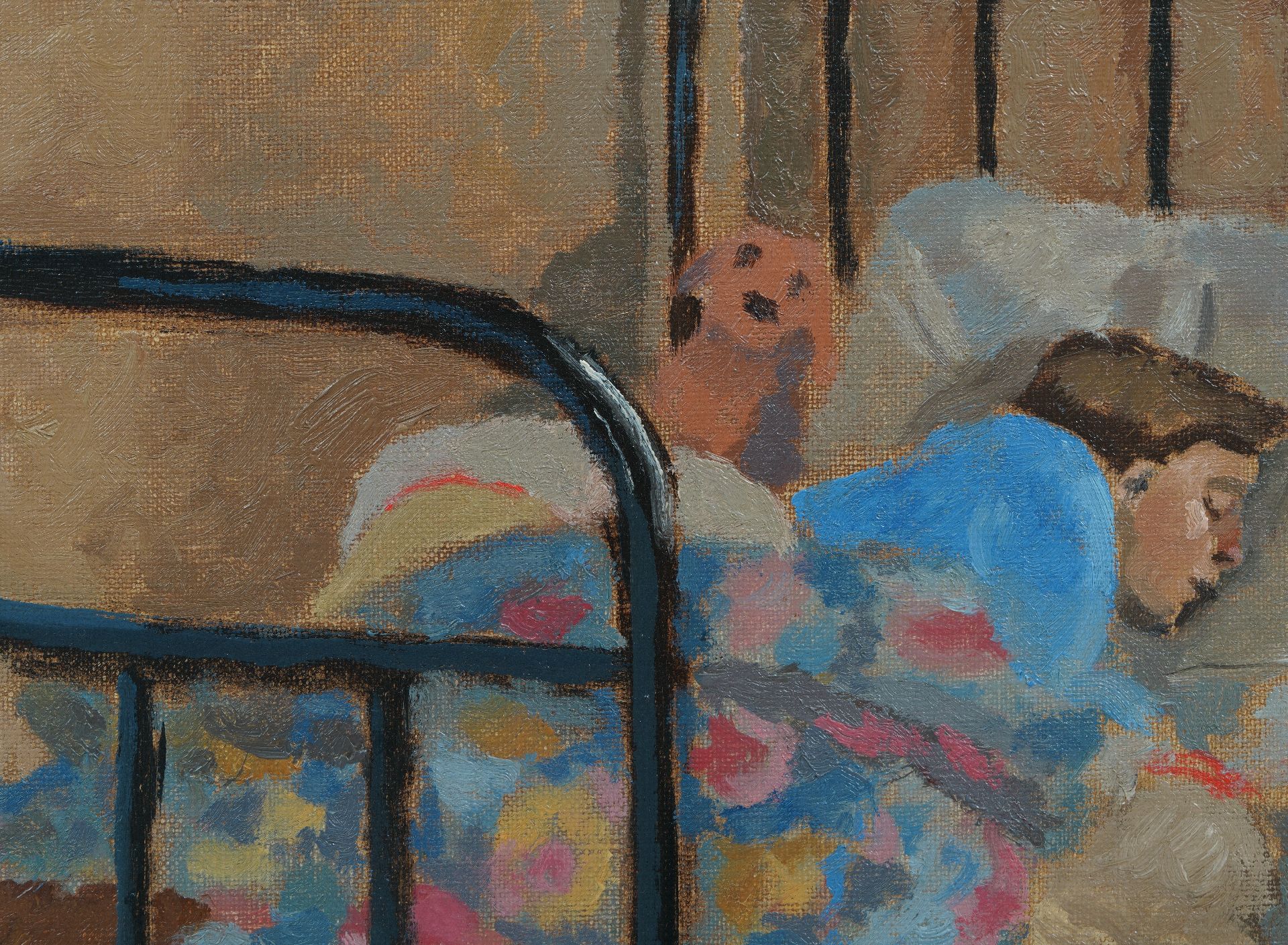 Otto de Kat wordt soms een 'intimist' genoemd, een schilder die zijn motieven bij voorkeur ontleende aan zijn eigen omgeving: zijn vrouw, zijn interieur, het landschap en zijn huis-atelier in de Auvergne. Zijn grote voorbeeld daarbij was Pierre Bonnard. De Kat begon zijn schildersloopbaan toen hij in 1928 vertrok naar Parijs, waar hij beïnvloed werd door het impressionisme. Terug in Nederland schilderde hij vooral portretten en interieurs. Daarin legde hij zijn eerste indrukken van sfeer, licht en kleur vast, nadat deze waren bezonken en alleen de essentie was overgebleven. Na vestiging in Ukkel (1938) rijpte dit 'bezonken impressionisme' tot steeds lossere en abstractere vormen in een prachtig koloriet. Toen dit schilderij dit jaar in museum JAN in Amstelveen te zien was schreef de recencent van het NRC erover: (...) 'in die eerste zaal hangt ook een opvallend eigen – want intiem, persoonlijk en ontroerend – schilderij, waarschijnlijk een portret van zijn eerste vrouw, Hans van Zijl. Je ziet haar liggen onder een kleurige sprei, de gordijnen zijn geopend en er is daglicht, dus misschien doet ze een middagslaapje, op een tafeltje een paar boeken – ze was dichteres. Misschien, denk je als je ervoor staat, is dit schilderij wel zo geslaagd doordat de kunstenaar hier niet aan het experimenteren was, hij schilderde onschuld en deed dat ingetogen en zonder pretenties'.