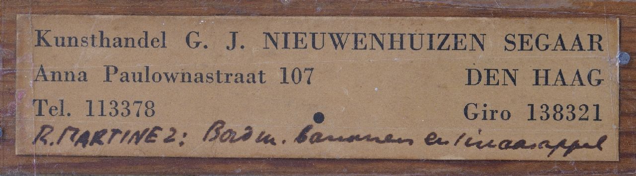De van origine Cubaan Raoul Martinez groeide op in Parijs, waar hij de kunstwereld ontdekte. Na enige tijd gewerkt te hebben op het landgoed van zijn ouders, koos hij definitief voor het kunstenaarschap. In 1910 nam hij deel aan een tentoonstelling van de vooruitstrevende groep La Libre Esthétique in België. Met het uitbreken van de Eerste Wereldoorlog vluchtte hij naar Nederland. Daar kwam Martinez in contact met kunstpedagoog en criticus H.P. Bremmer, die zeer geïnteresseerd was in zijn kubistische stillevens met eenvoudige voorwerpen. Ook kocht hij een aantal werken van Martinez. Via Bremmer leerde de schilder ook de kunstverzamelaar Helene Kröller-Müller kennen. Het Kröller-Müller Museum heeft nog altijd een aantal werken van Martinez in de collectie.