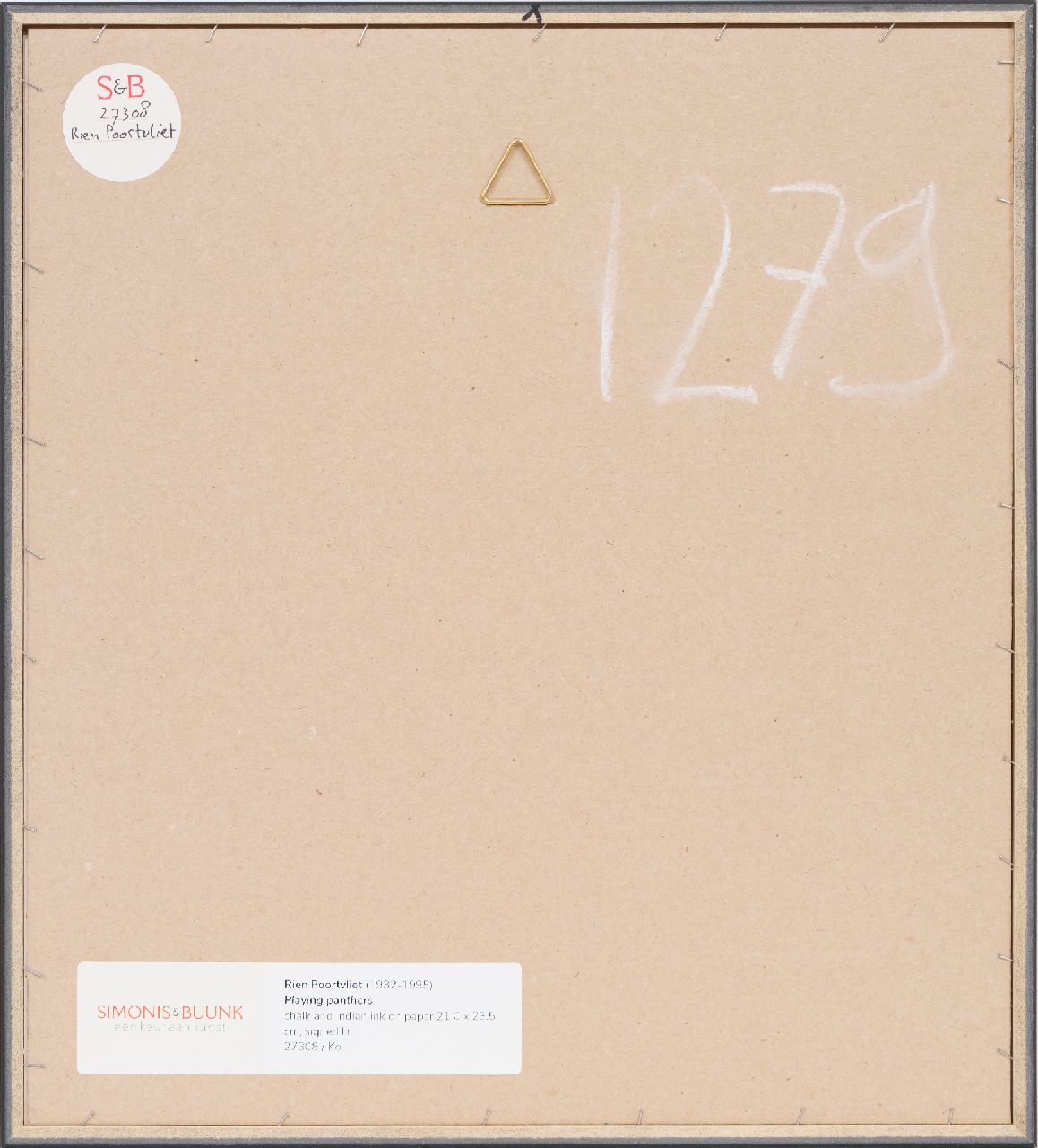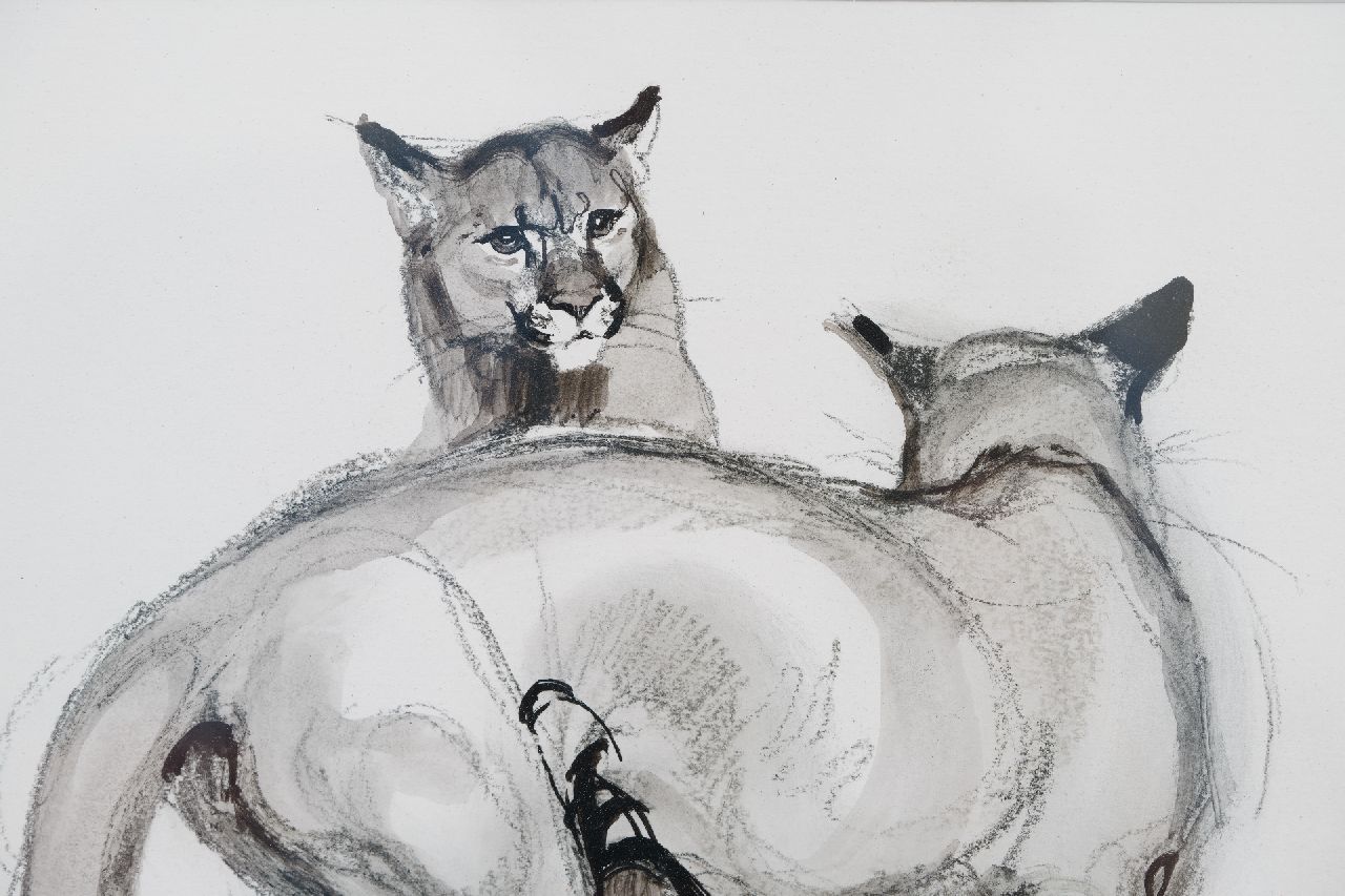 Rien Poortvliet kunstwerk • aquarel • tekening • voorheen te koop Spelende panters