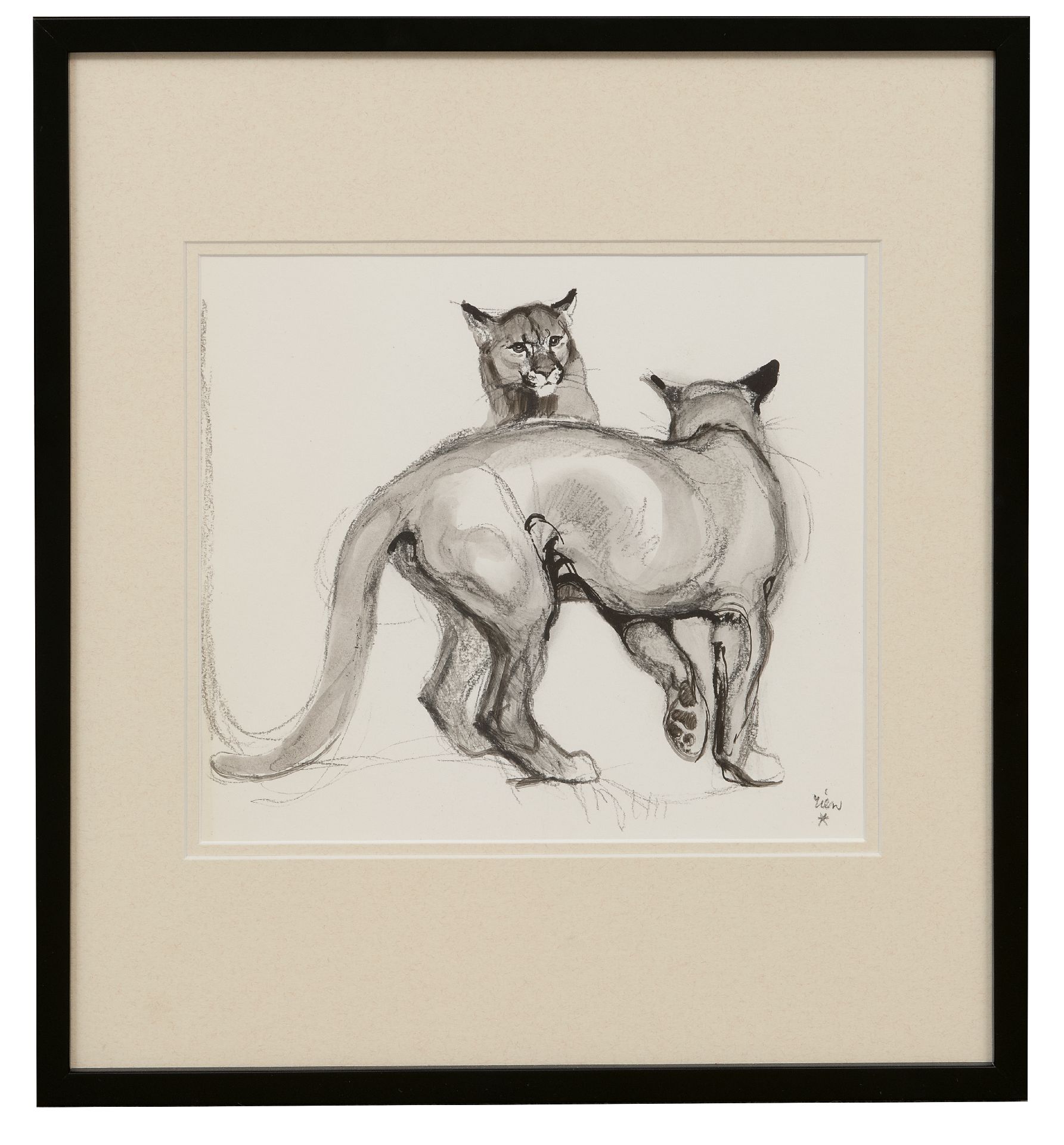 Rien Poortvliet kunstwerk • aquarel • tekening • voorheen te koop Spelende panters