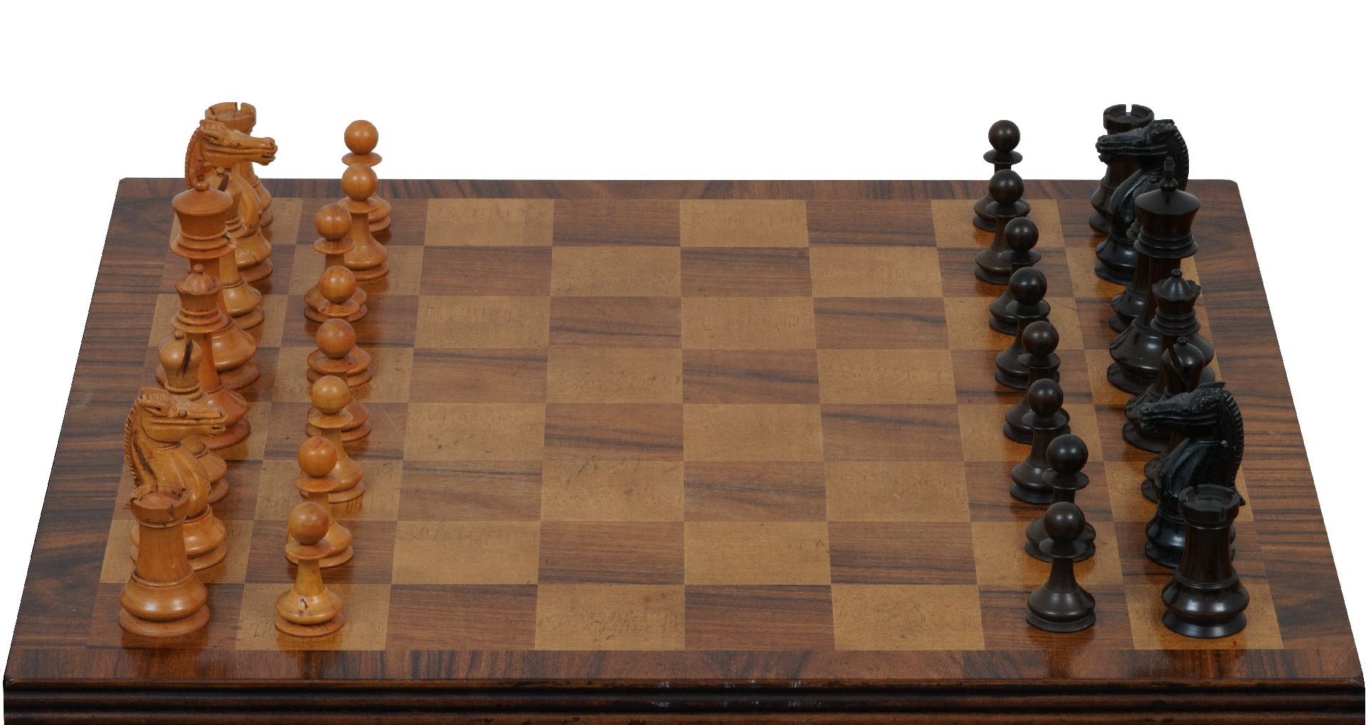 Schaakset, opbergdoos kunstwerk • beeld • sculptuur • te koop Schaakset in 'Staunton' stijl, Engeland