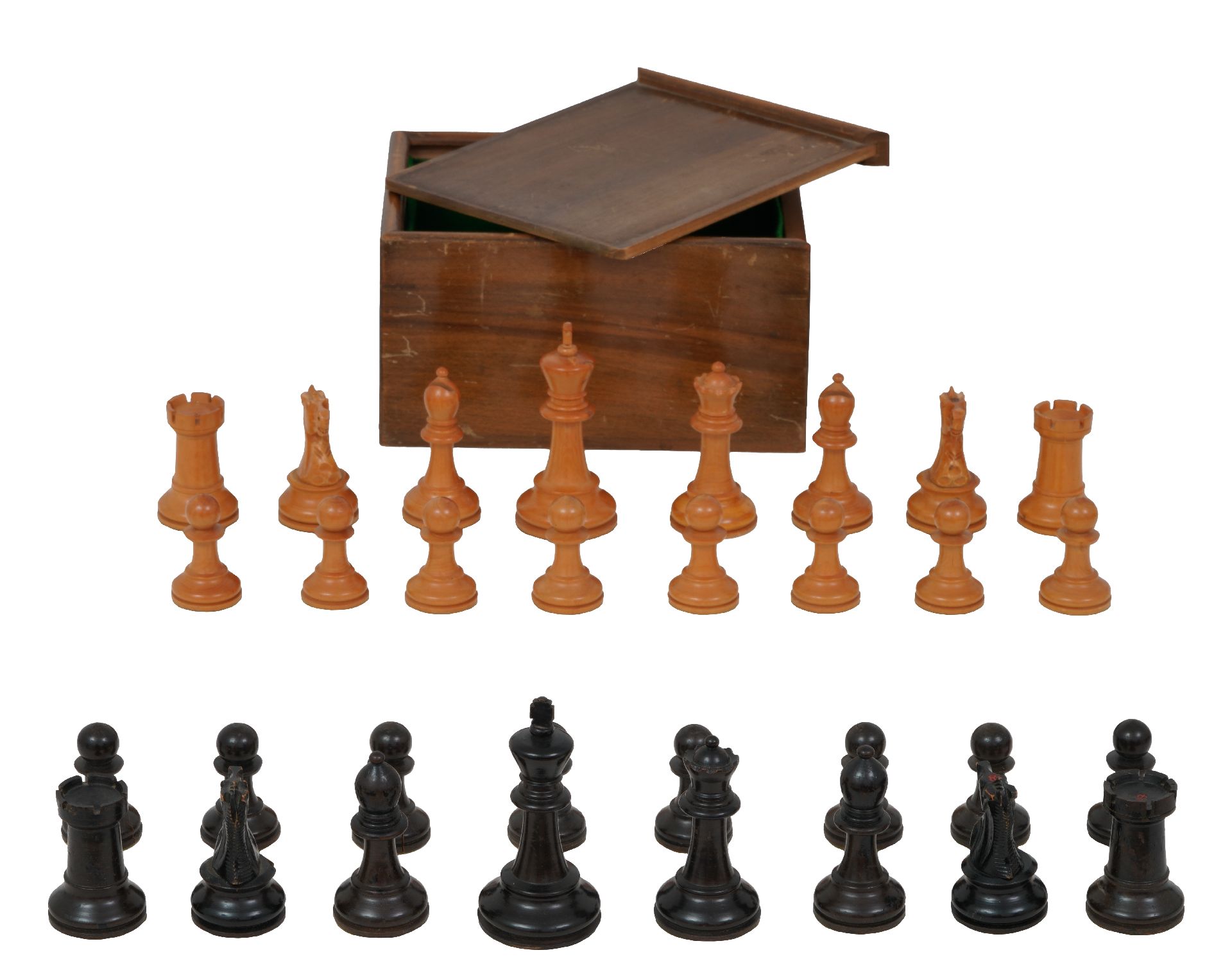 Schaakset in 'Staunton' stijl in houten doos
