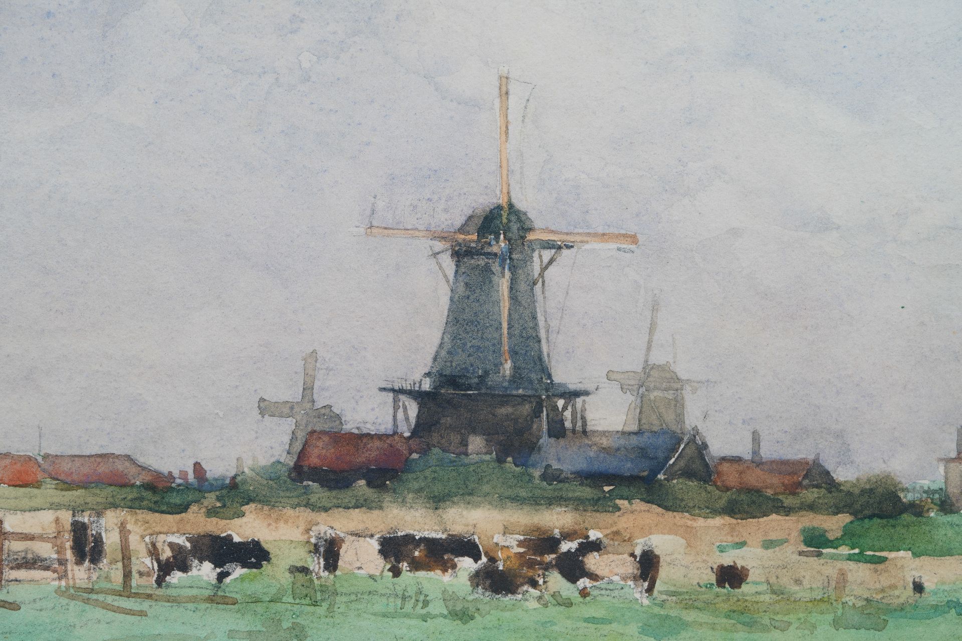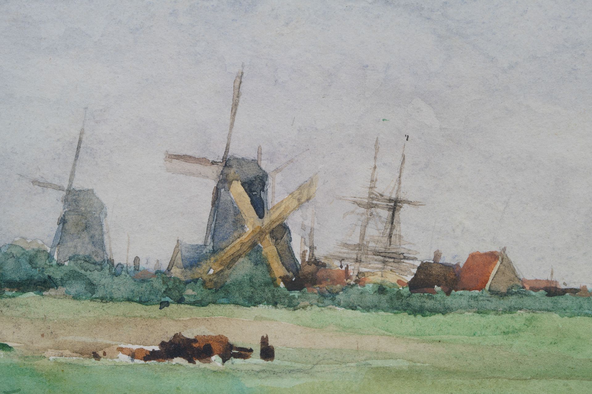 Victor Uytterschaut kunstwerk • aquarel • tekening • voorheen te koop Molens in een Hollands polderlandschap