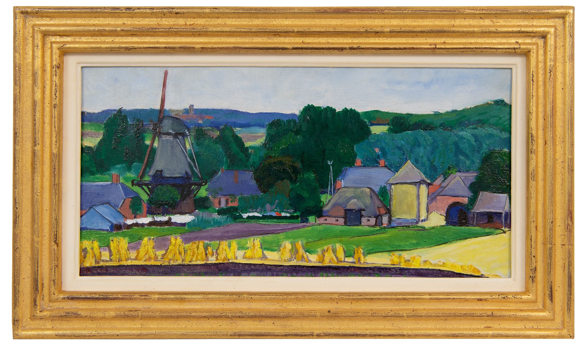 Vilmos Huszár kunstwerk • schilderij • te koop Boerderijen in een glooiend landschap