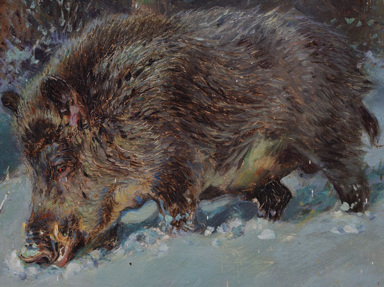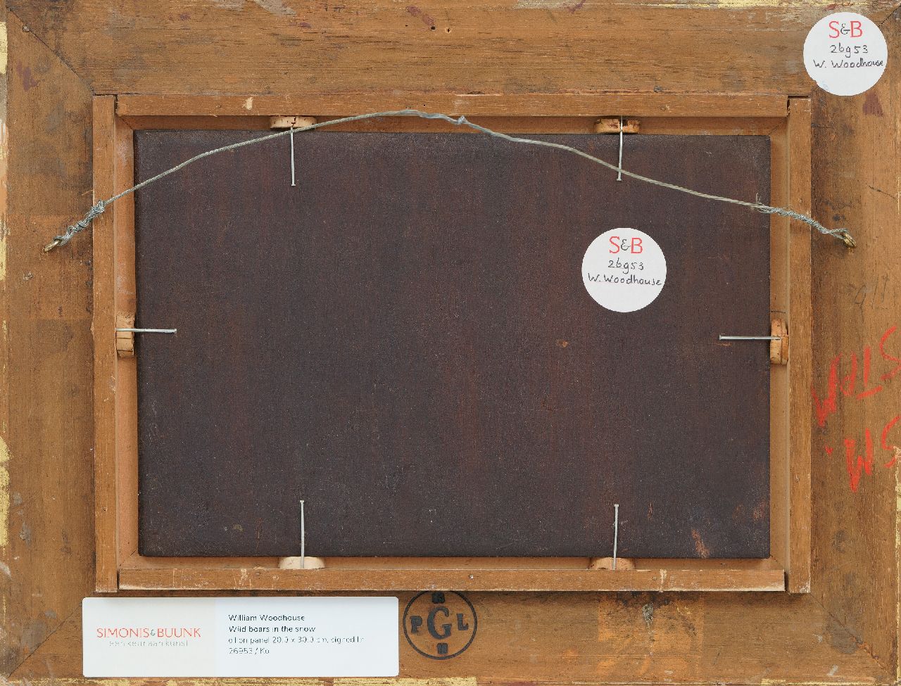 William Woodhouse kunstwerk • schilderij • voorheen te koop Twee wilde zwijnen in de sneeuw